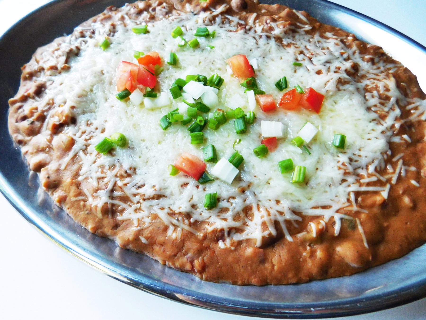 Two types of beans, chili & refried, are smashed together then topped with melted cheese. A new type of side dish for your burrito and taco nights.