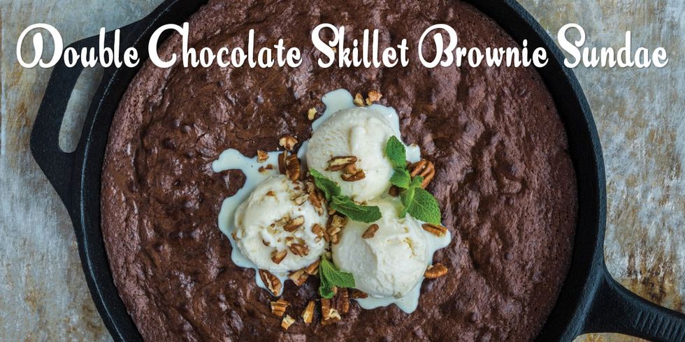 Heat cast iron skillet over medium-low heat. Heat butter until melted, add sugars and stir until sugar is dissolved. Remove from heat. Chill for 10 minutes.