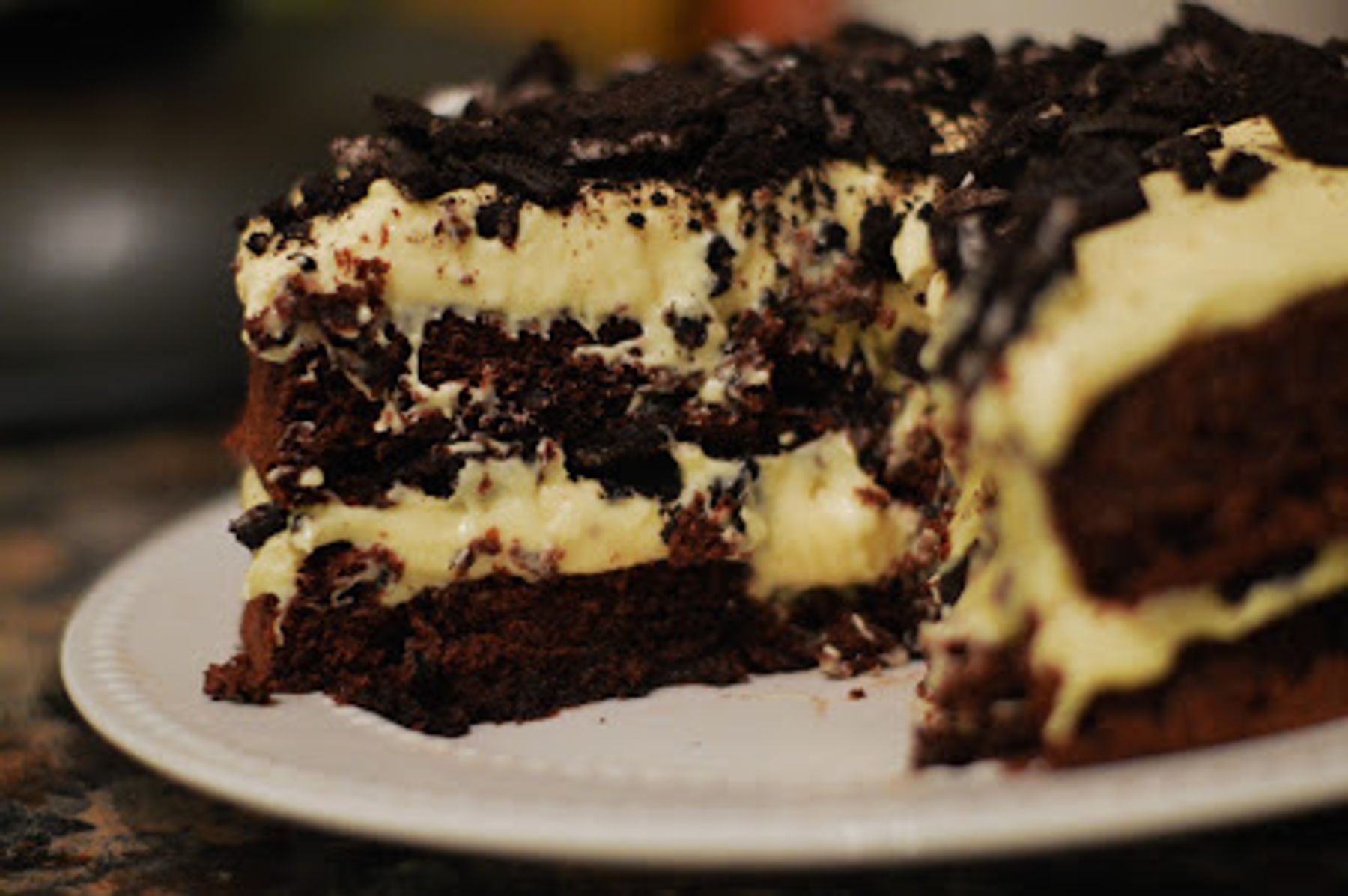 Layers and layers of pudding, chocolate sandwich cookies and chocolate cake...need I go on???