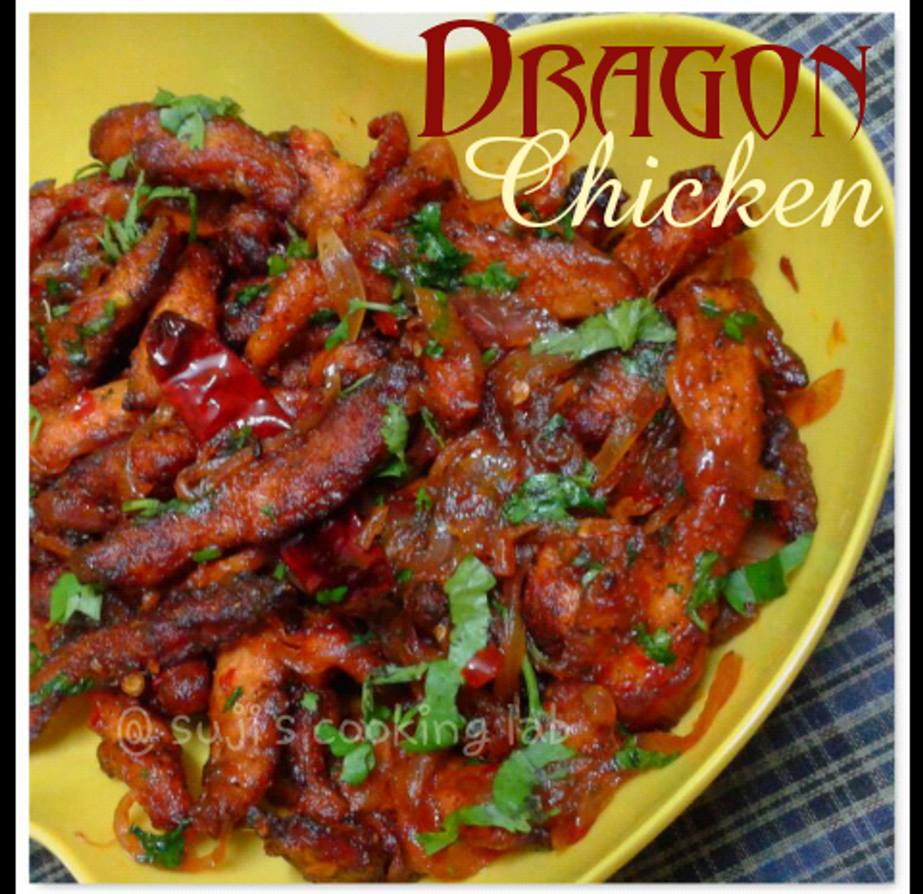 I usually prefer to make dry side dishes with boneless chicken. I planned to make a fried rice for dinner and for the side dish I decided to try something that I haven't made before. A dish that I had long back in a Chinese restaurant came to my mind and as I was searching for an apt recipe for that dish, I happened to see the pic of Dragon Chicken from another blog. The dish in the pic looked very good, so I checked out the recipe. As I had most of the ingredients with me I decided to try