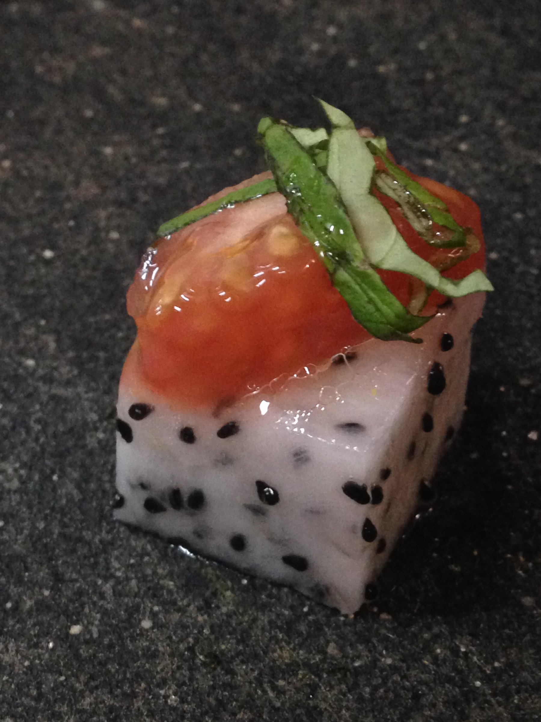 Dragon Fruit and Tomato “Caviar” Appetizer
