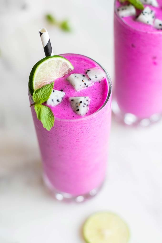 A perfect Dragon Fruit Smoothie, made with a creamy blend of dragon fruit, mango, and banana. Keep this dragon fruit smoothie recipe vegan by using a non dairy milk and subbing a plant based protein. Dragon fruit has a mild taste, so the tropical flavor is played up with a squeeze of fresh lime.