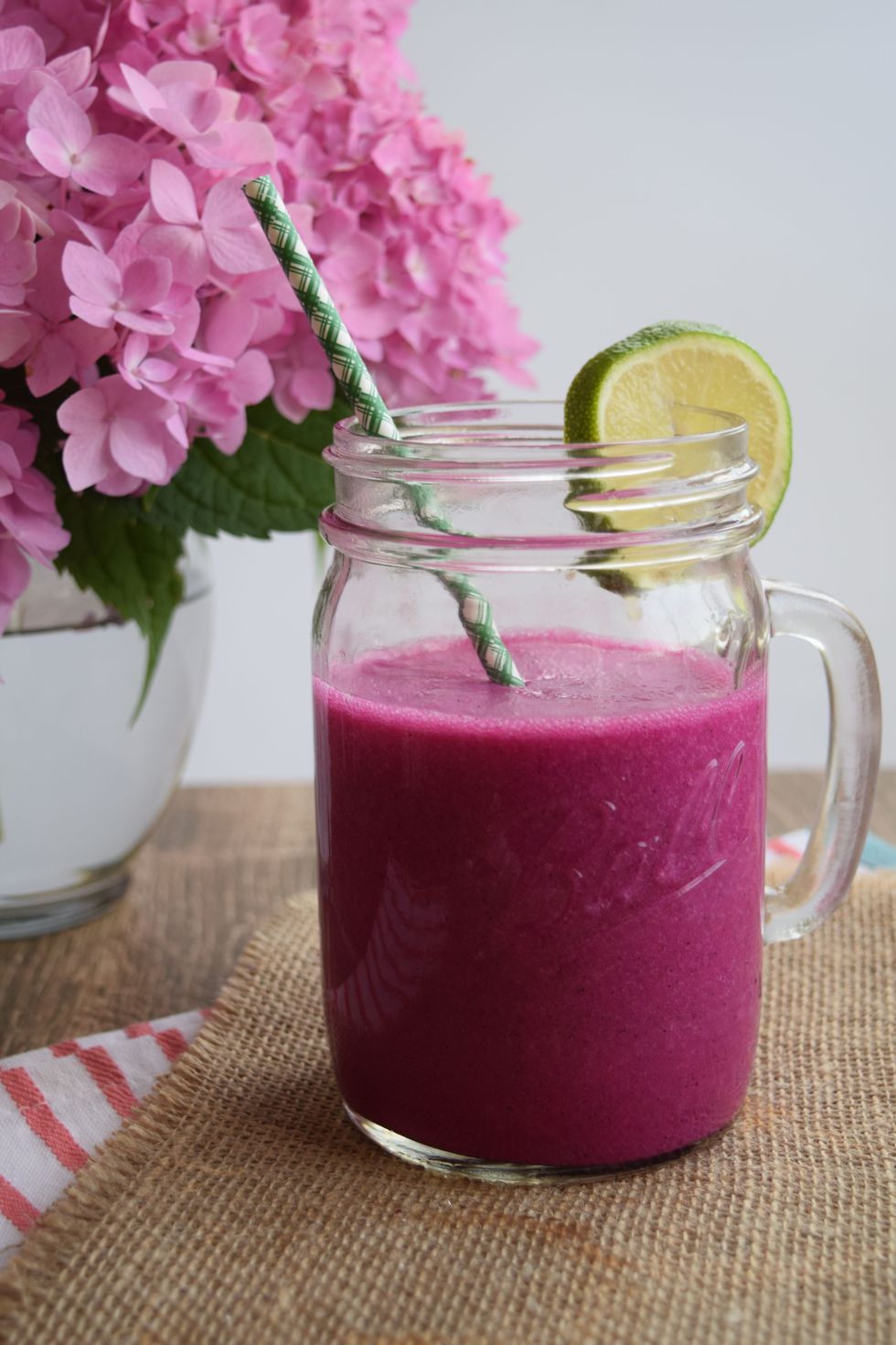 A beautiful and nutritious smoothie made from dragonfruit and banana.