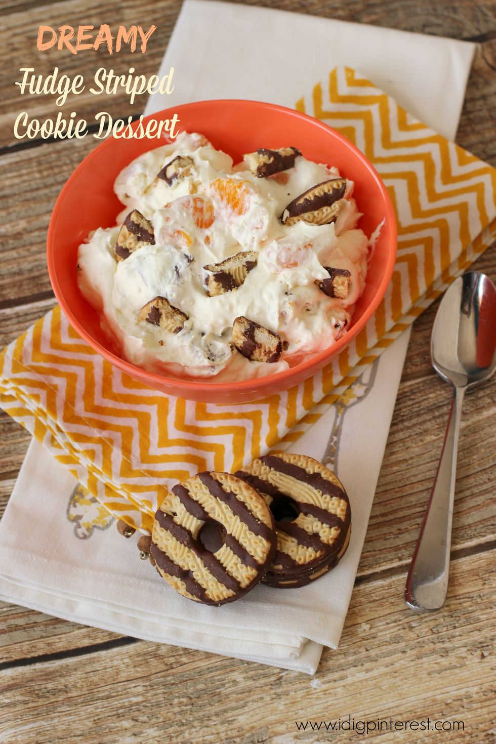 This Dreamy Fudge Striped Cookie Dessert is very aptly named. It's fluffy and sweet and every bite is a little piece of heaven!