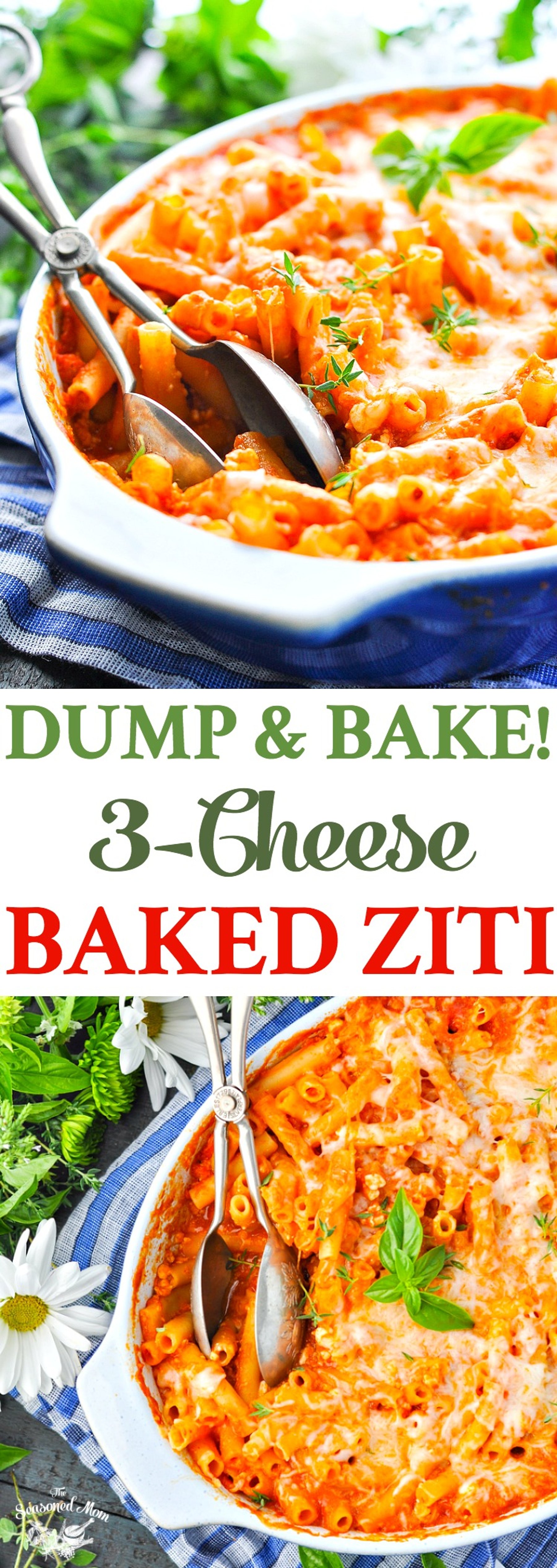 You don’t even have to boil the pasta for this quick and easy Dump-and-Bake 3-Cheese Baked Ziti! Just stir all of the uncooked ingredients together in the dish, cover it with foil, and pop it in the oven. Weeknight dinners just got a whole lot easier!