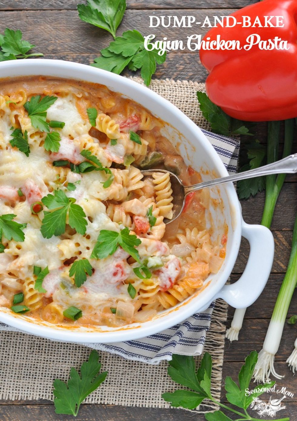 With just 10 minutes of prep, you can serve an easy, one-dish dinner that your family will love! This creamy Dump-and-Bake Cajun Chicken Pasta is so fast because you don’t even have to boil the noodles!