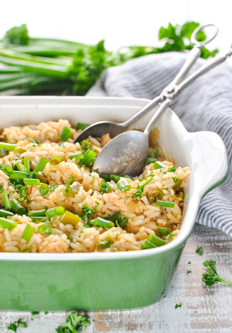 DUMP-AND-BAKE CHICKEN & DIRTY RICE: the chicken, rice, and vegetables all cook together in one dish for a quick meal with just 10 minutes of prep!