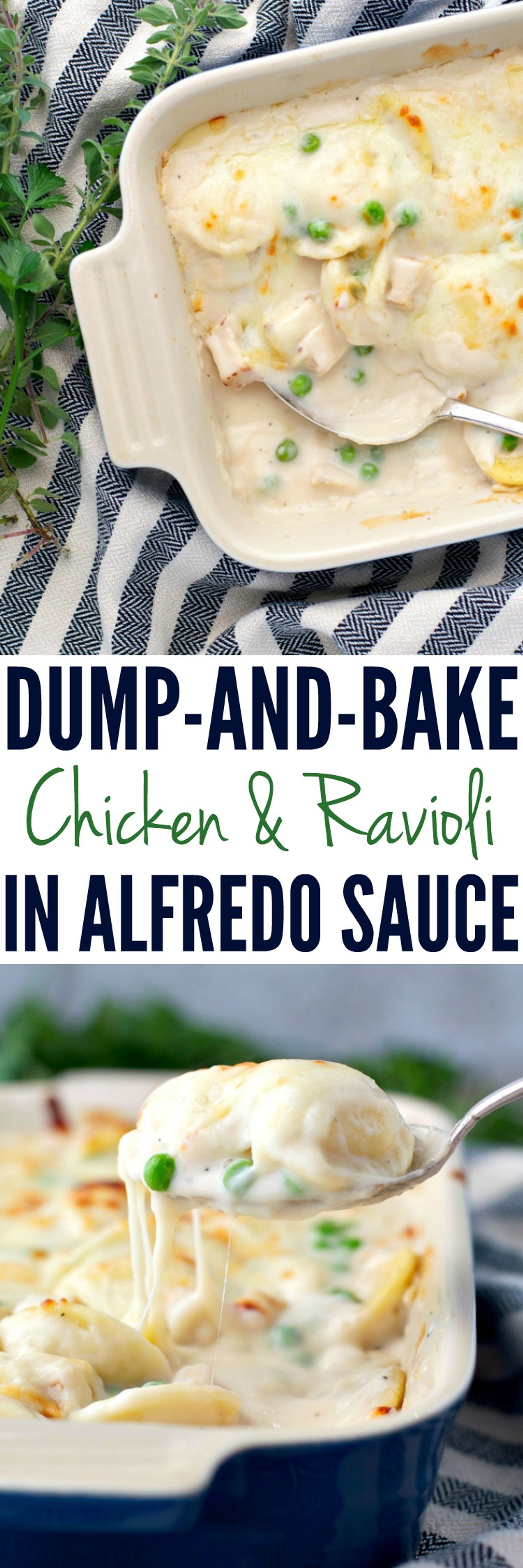 You don’t even have to boil the pasta for this easy Dump-and-Bake Chicken & Ravioli in Alfredo Sauce! With only 5 simple ingredients and about 5 minutes of prep, family dinners don’t get much better!