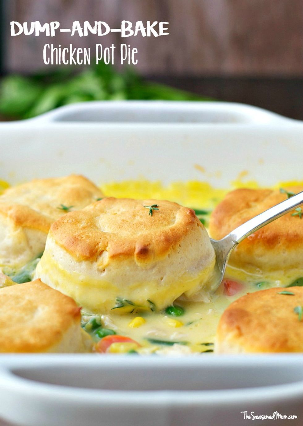 You only need 10 minutes to prepare a shortcut chicken pot pie with biscuits! This hearty casserole features chicken and vegetables in a creamy sauce, topped with golden brown buttermilk biscuits. Serve the simple comfort food classic with a side salad, a loaf of crusty bread, or a pan of cornbread for an easy weeknight dinner.