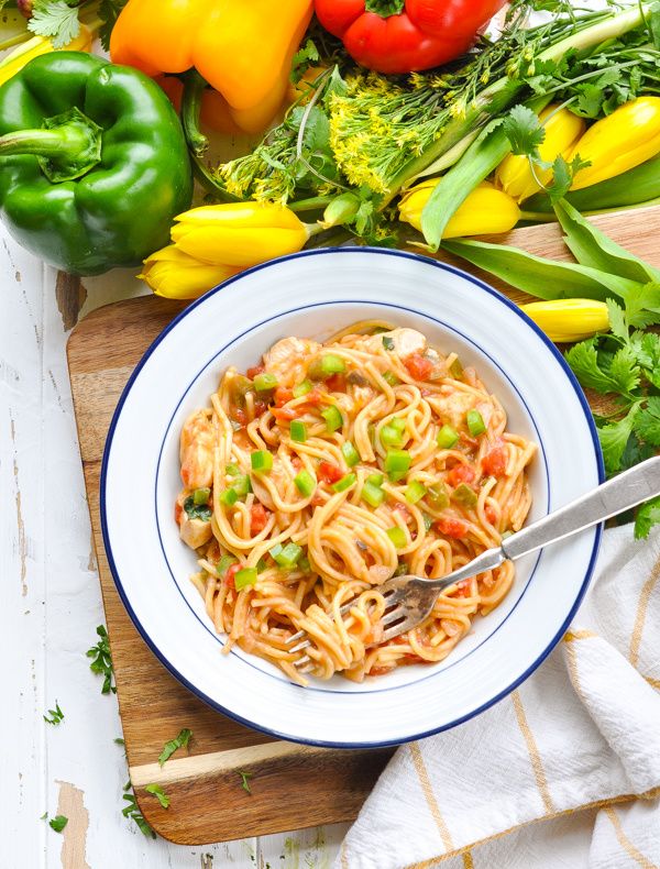 You don't even have to boil the pasta, cook the chicken, or sauté the vegetables for this easy Dump-and-Bake Chicken Spaghetti! Just stir all of the raw ingredients together and you'll have a family-friendly dinner that's ready for the oven in just 10 minutes.