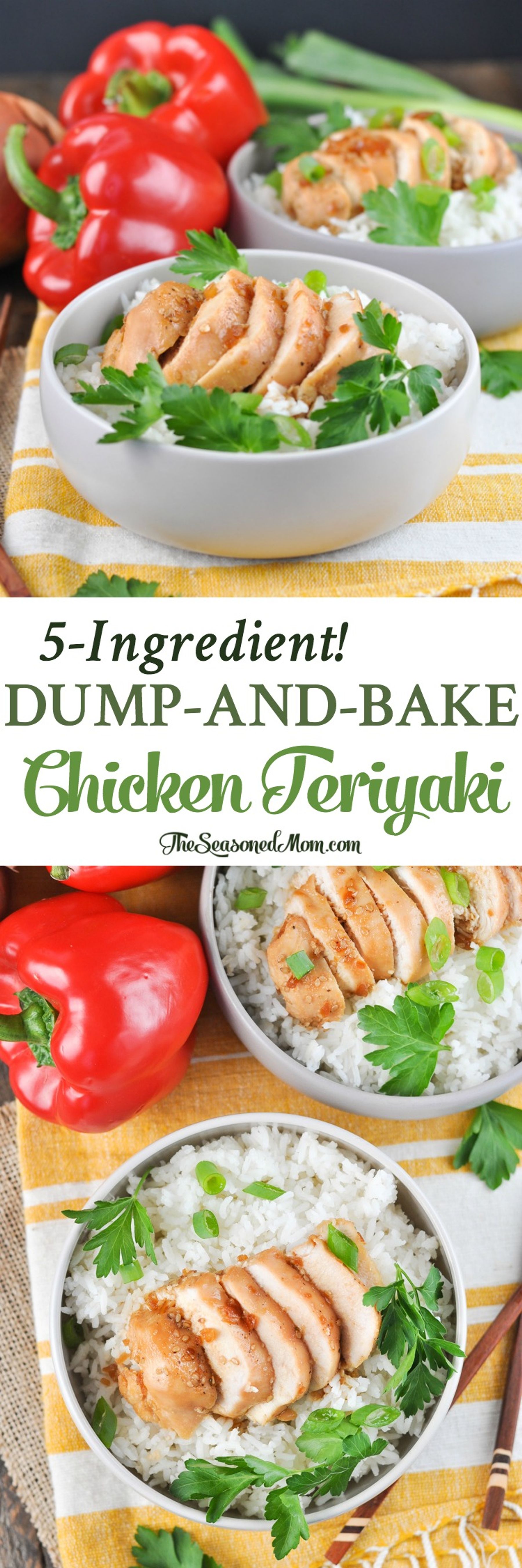 With just 5 minutes of prep and only 5 ingredients, this Dump-and-Bake Chicken Teriyaki is an easy, family-friendly dinner for busy nights! Tender, juicy chicken bakes in a rich, sweet-and-savory sauce for a complex dish that tastes like you spent hours in the kitchen. Served with rice and plenty of steamed vegetables, this healthy dinner is a simple way to bring the family together at the end of the day β without much effort on your part!