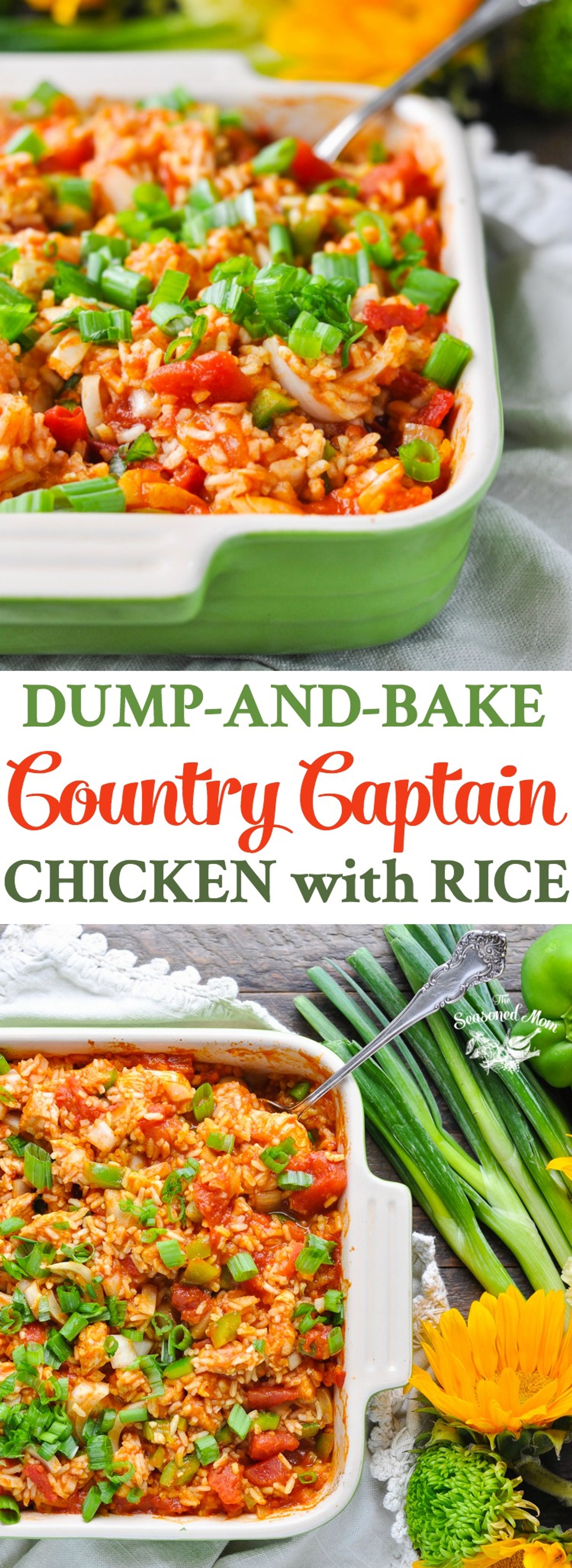 A Southern classic gets modified for the dump-and-bake method! Country Captain is an old-fashioned Southern dish consisting of chicken braised with onion, tomatoes, green pepper, fruit, and curry powder. The meal traditionally calls for bone-in chicken (which can take up to an hour to braise), so I substituted thin-sliced boneless chicken breasts for a quicker cooking time. Country Captain is typically served over rice, so I just made the process even easier by cooking the rice in the same dish