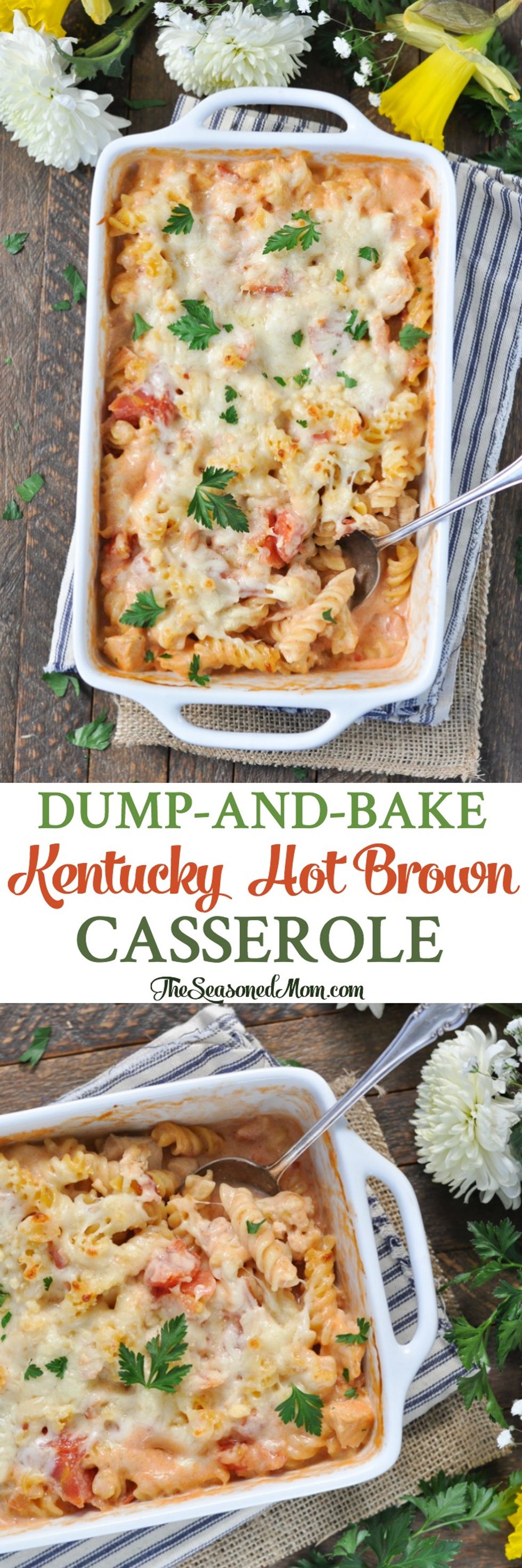 There’s no need to boil the pasta! Just dump-and-bake these simple ingredients for an easy Kentucky Hot Brown Casserole that’s loaded with turkey (or chicken), bacon, tomatoes, and a creamy sauce. It’s the perfect dish for weeknight dinners and Derby Day celebrations!