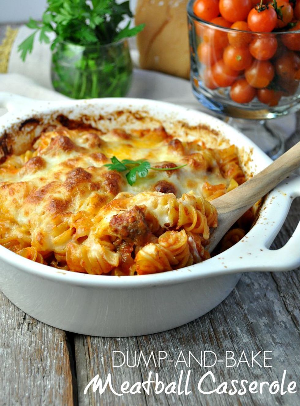 You don’t even have to boil the pasta for this easy Dump and Bake Meatball Casserole! With only 5 simple ingredients, family-friendly weeknight dinners don’t get much better than this!