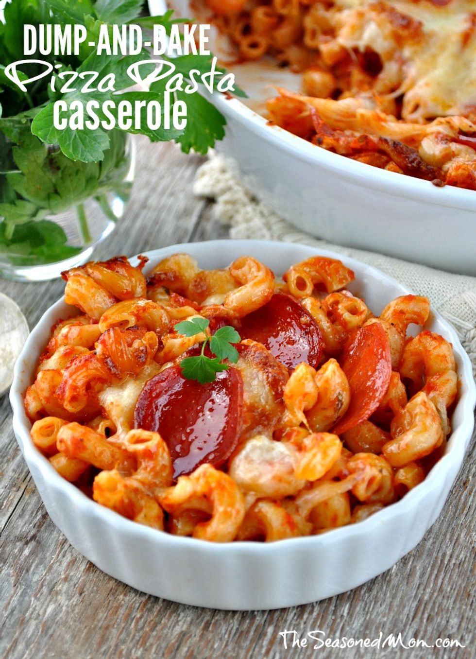 Family-friendly dinners don't get much easier than this 4-Ingredient Dump and Bake Pizza Casserole! There's no need to boil the pasta ahead of time, since all of the ingredients cook together in one dish for a hearty, comforting, and FAST weeknight supper!