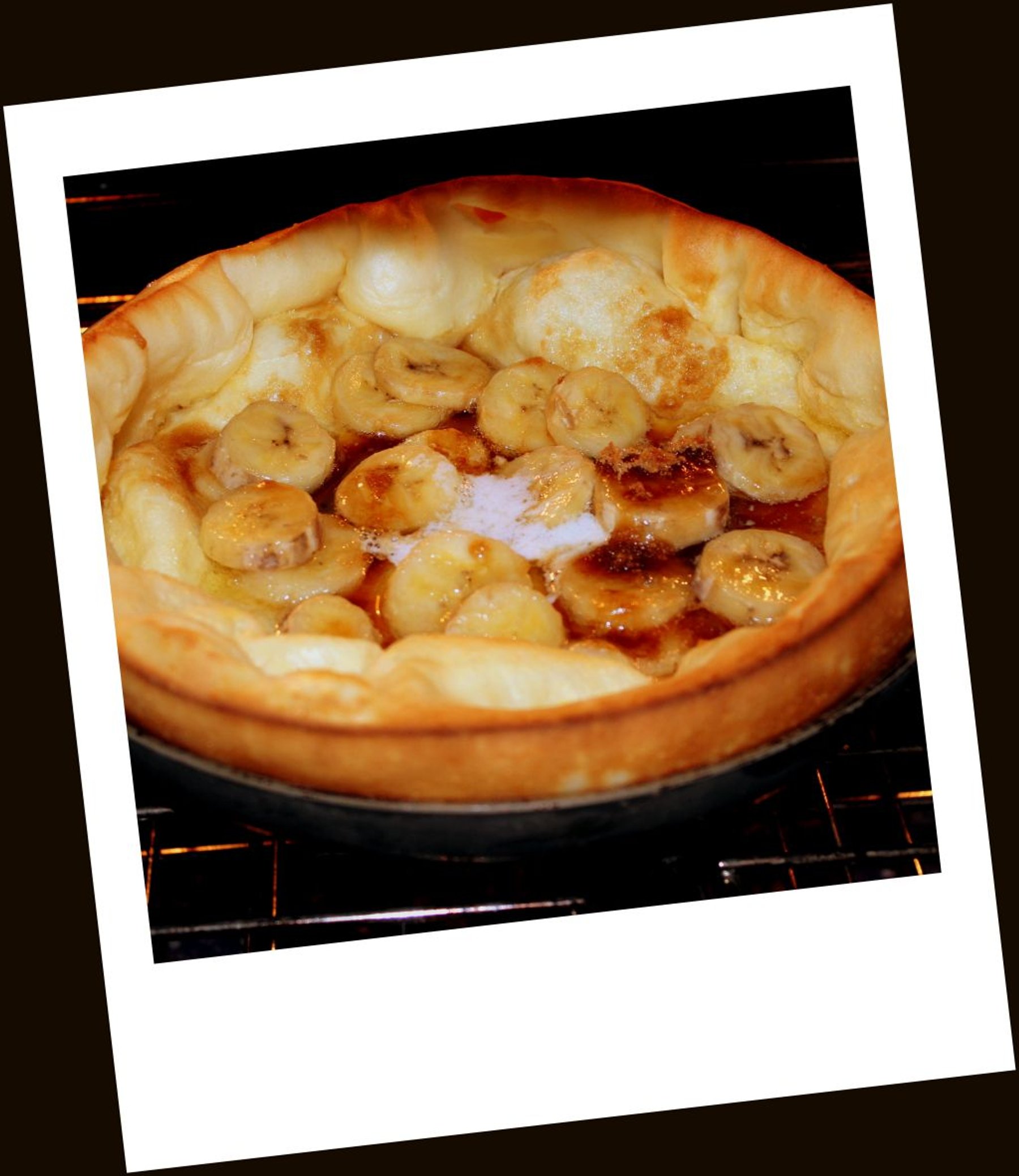 Light puff-pancake with caramelized, buttery banana topping.