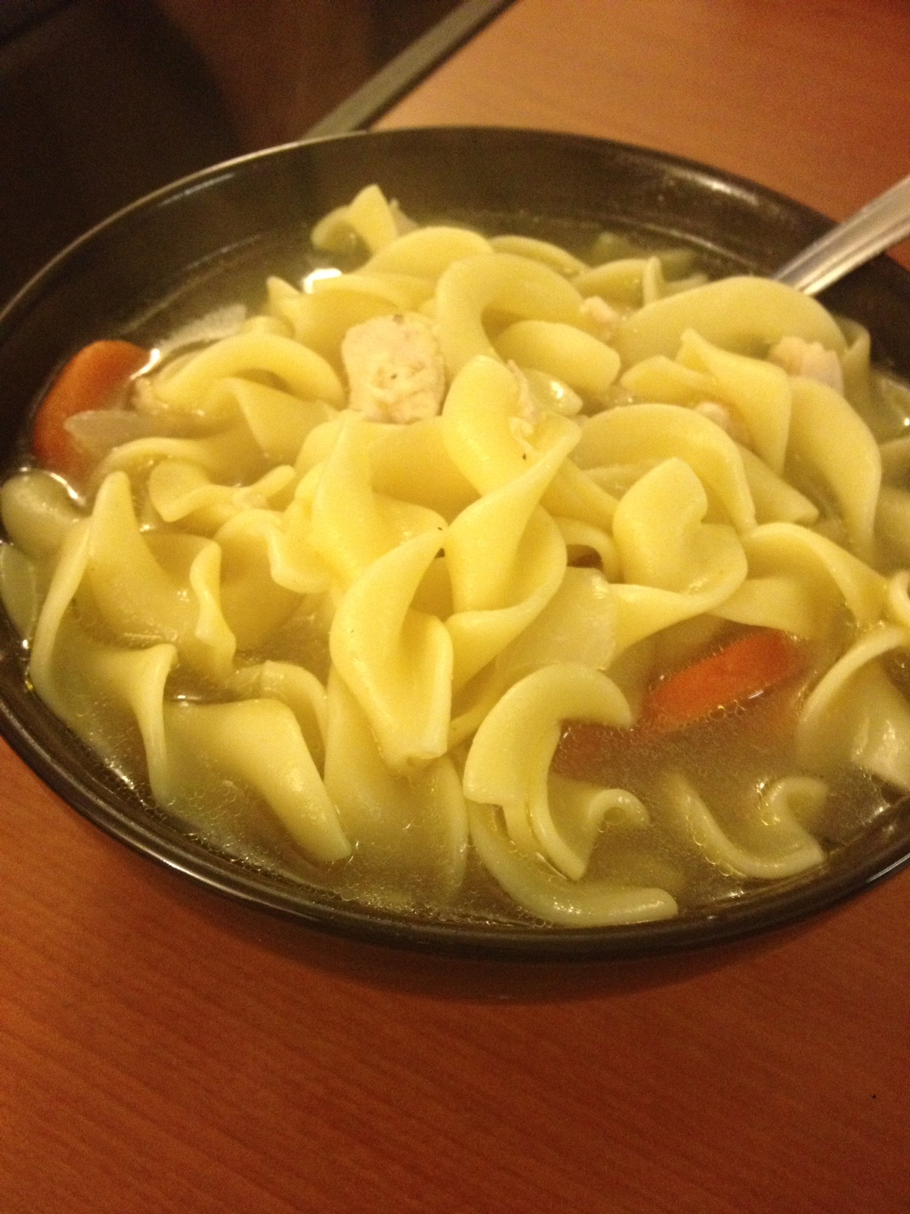 2) Fill pot 2/3 full with hot water and add bouillon cubes (I usually use 3 or 4)- you could also use canned chicken broth.