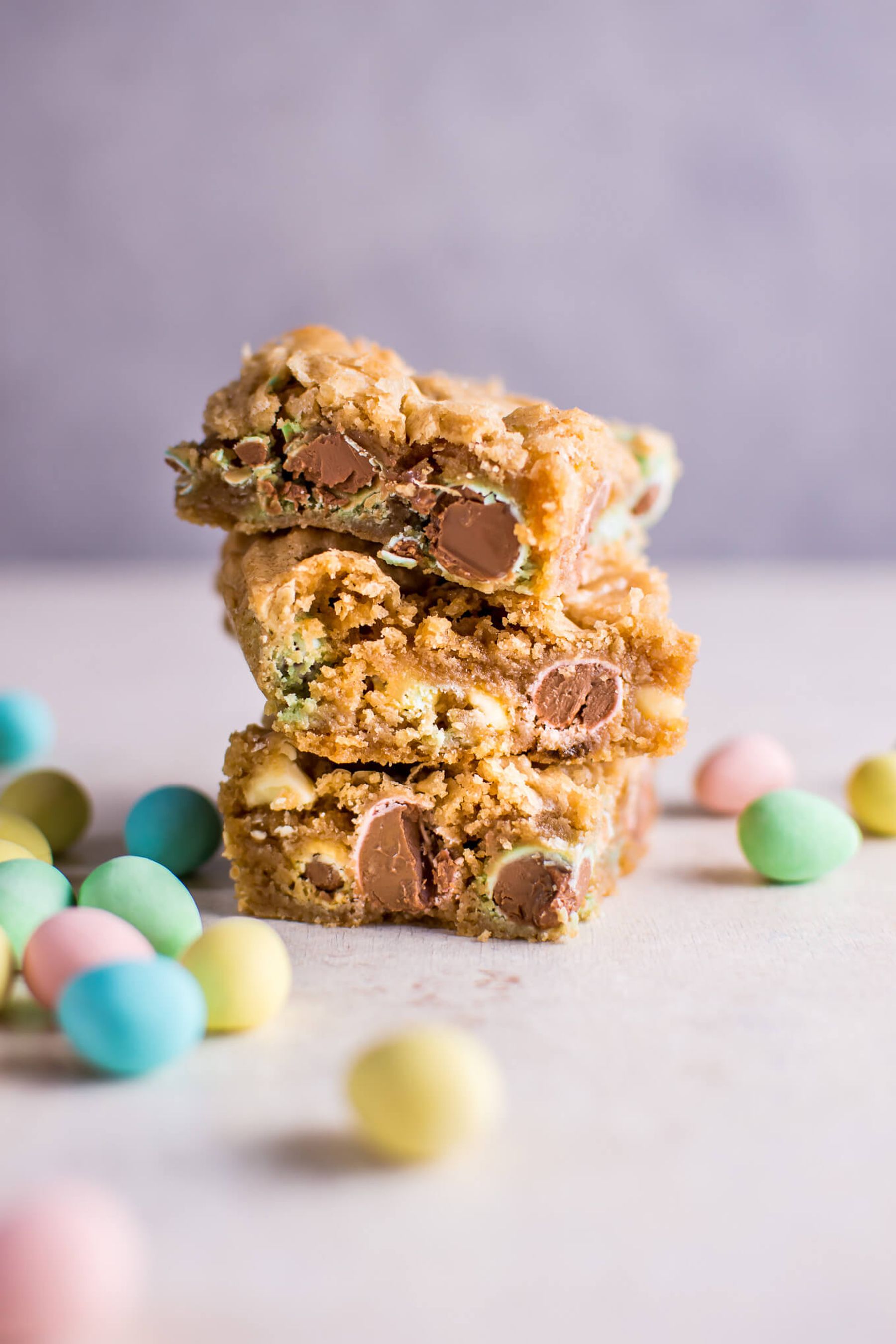 These Easter Mini Egg cookie bars are a fun and decadent way to eat your Cadbury Mini Eggs. They’re soft, melty, and totally addictive.