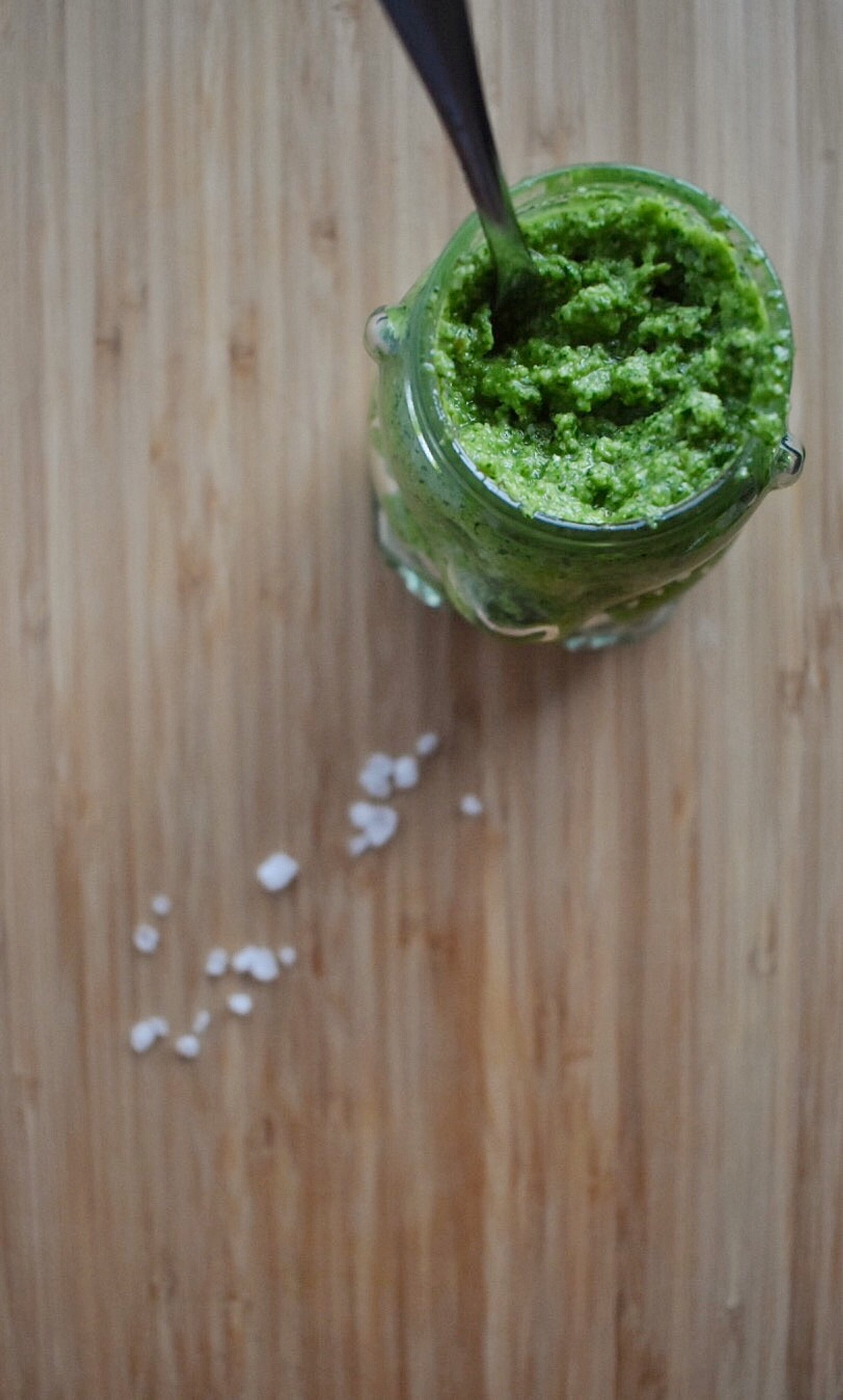 Toast the walnuts and garlic in a pan over medium-low heat for about five minutes (brown them, but do not burn them!).