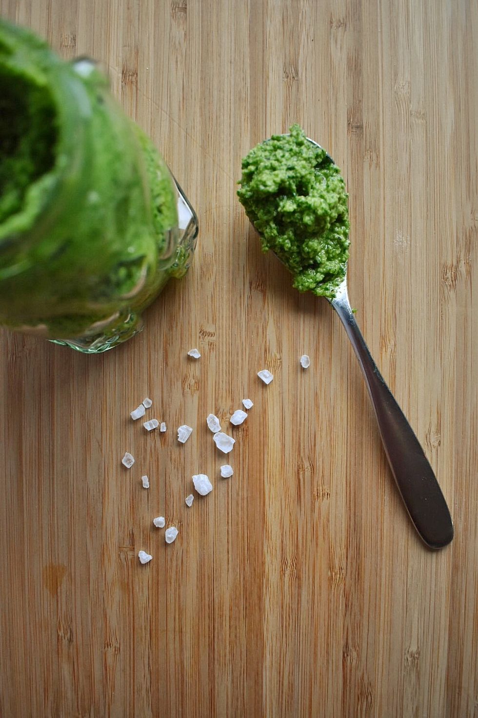 Toast the walnuts and garlic in a pan over medium-low heat for about five minutes (brown them, but do not burn them!). Add the toasted walnuts and garlic, along with the arugula, parmesan cheese and olive...