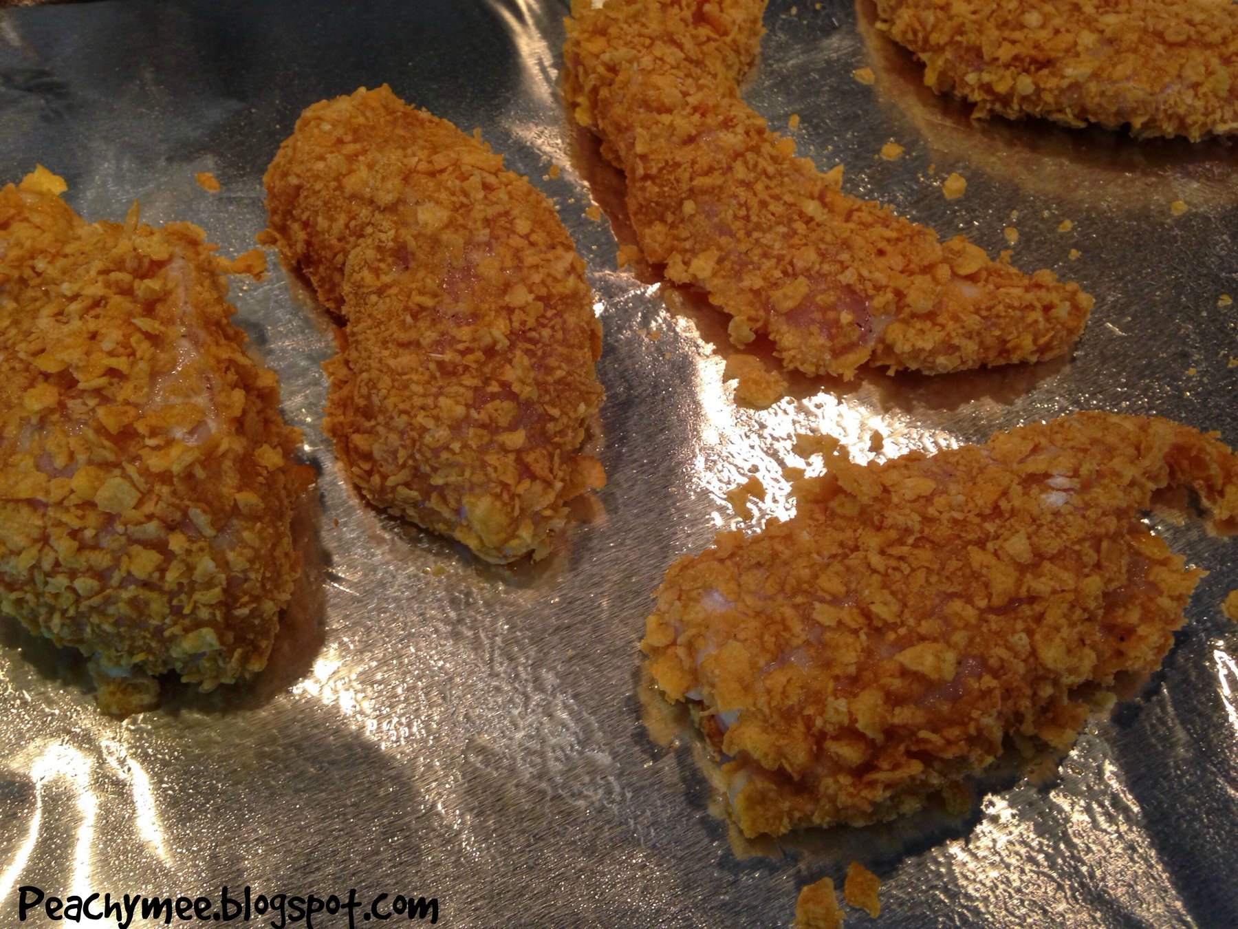 Directions: Preheat oven to 400. Meanwhile, begin by lining up flour, egg and crushed corn flakes. Starting with the flour, dredge the chicken tenders. Make sure to get the excess flour off. Next, dip the...