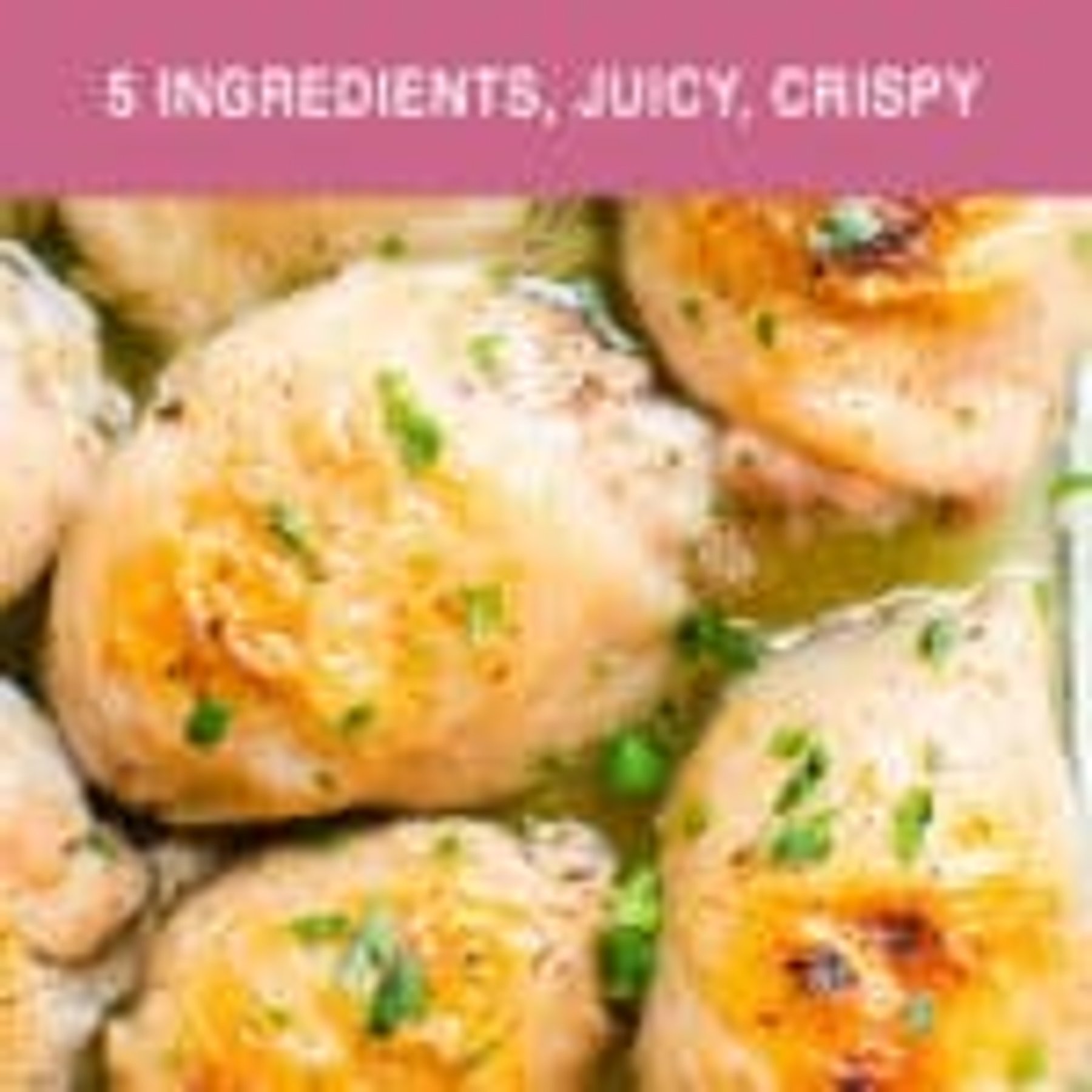 Make my mom's oven baked chicken thighs with lots of garlic and crispy skin for quick and easy dinner tonight! Also how to bake from frozen and make a one pan dinner instructions included.