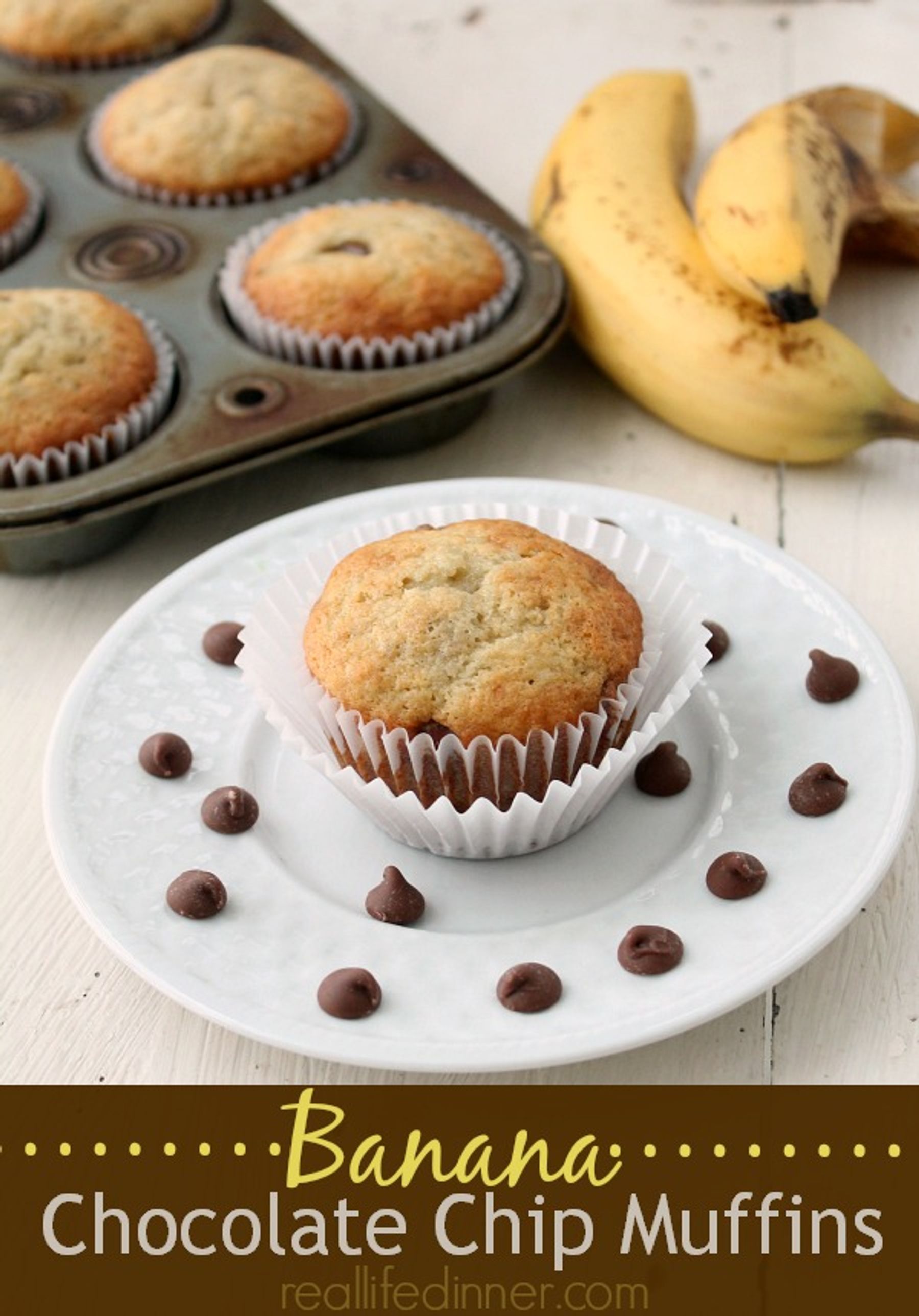 An easy go to recipe for Banana Chocolate Chip Muffins