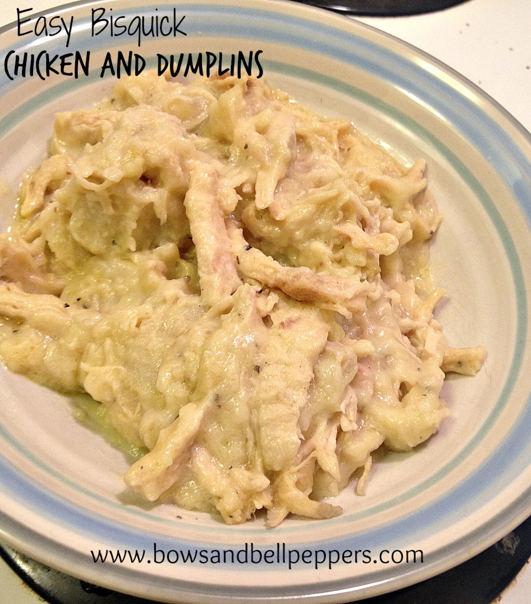 Easy chicken and dumplings made with bisquick.