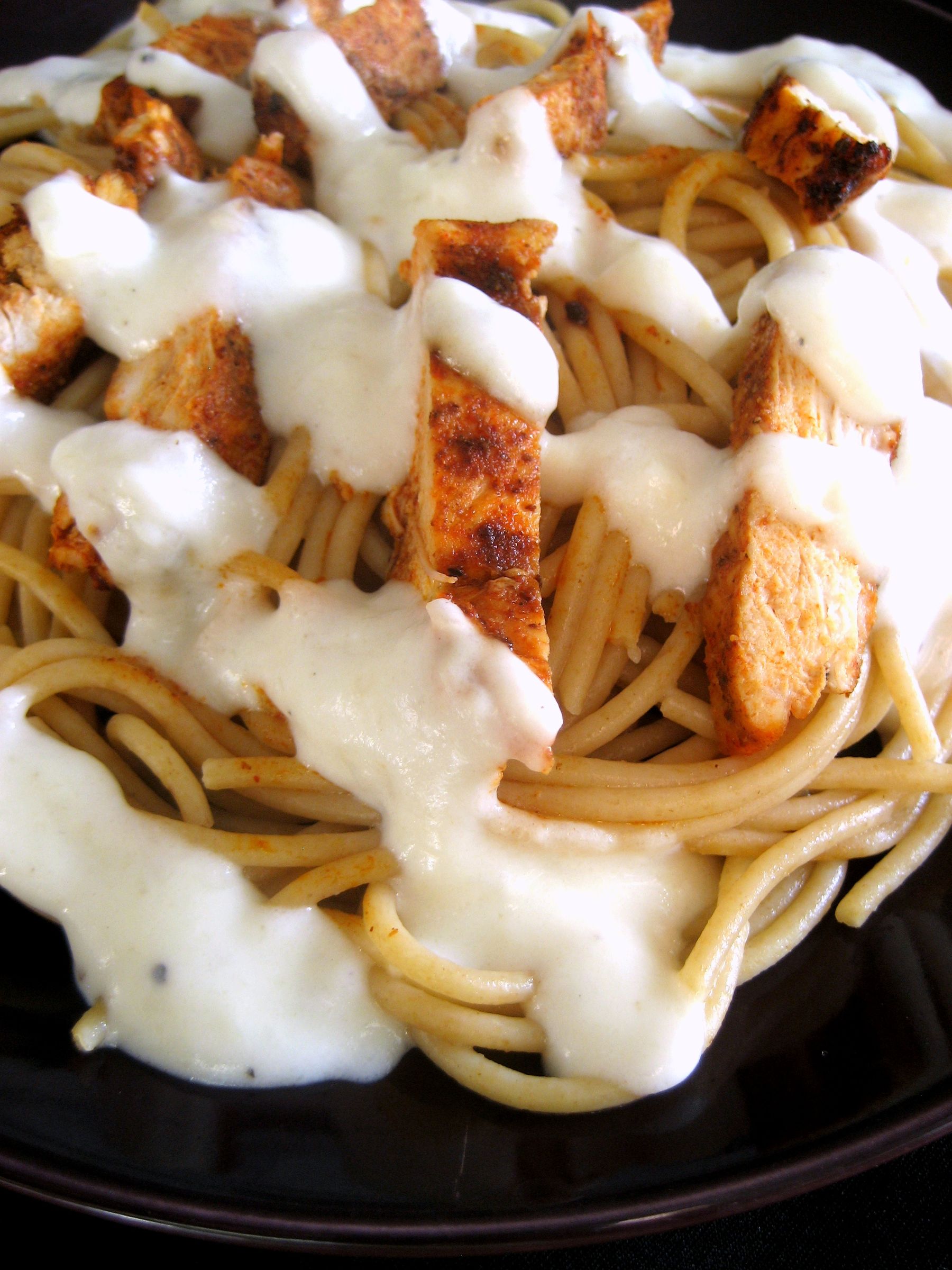 Pasta topped with juicy, flavorful blackened chicken and rich, creamy alfredo sauce that you wouldn't guess is lightened-up. A fancy meal that's easy to prepare!