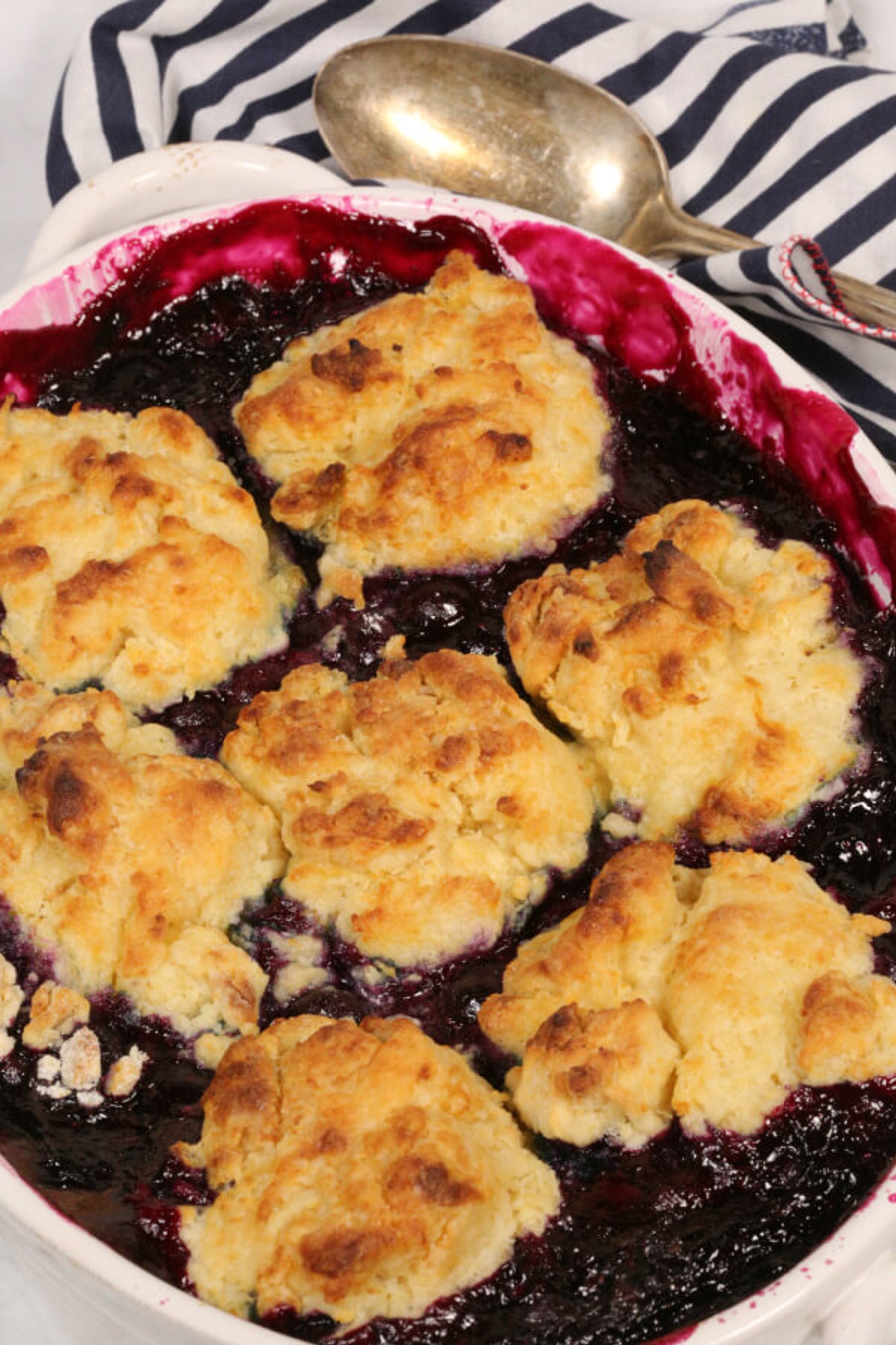EASY BLUEBERRY COBBLER is sweet, fresh, and totally delicious. I love that you can make it with fresh or frozen berries. It's perfect all year long!