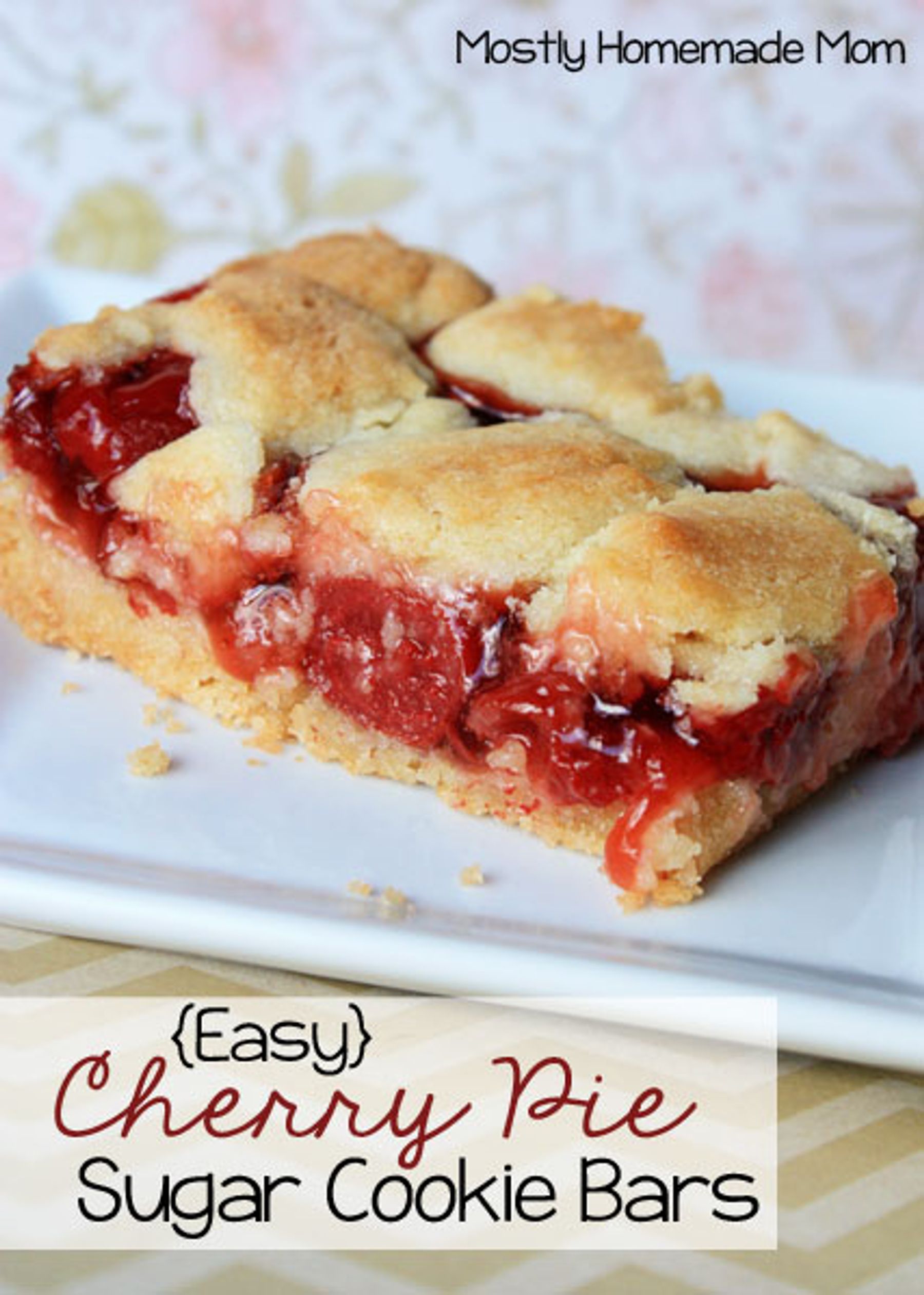 Delicious combination of cherry pie and sugar cookies - in bar form! So delicious and quick to throw together!