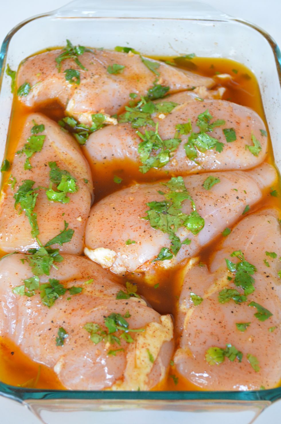 Place 6 boneless, skinless chicken breasts in a baking dish, zip top bag or other container. Pour marinade over chicken. Flip...