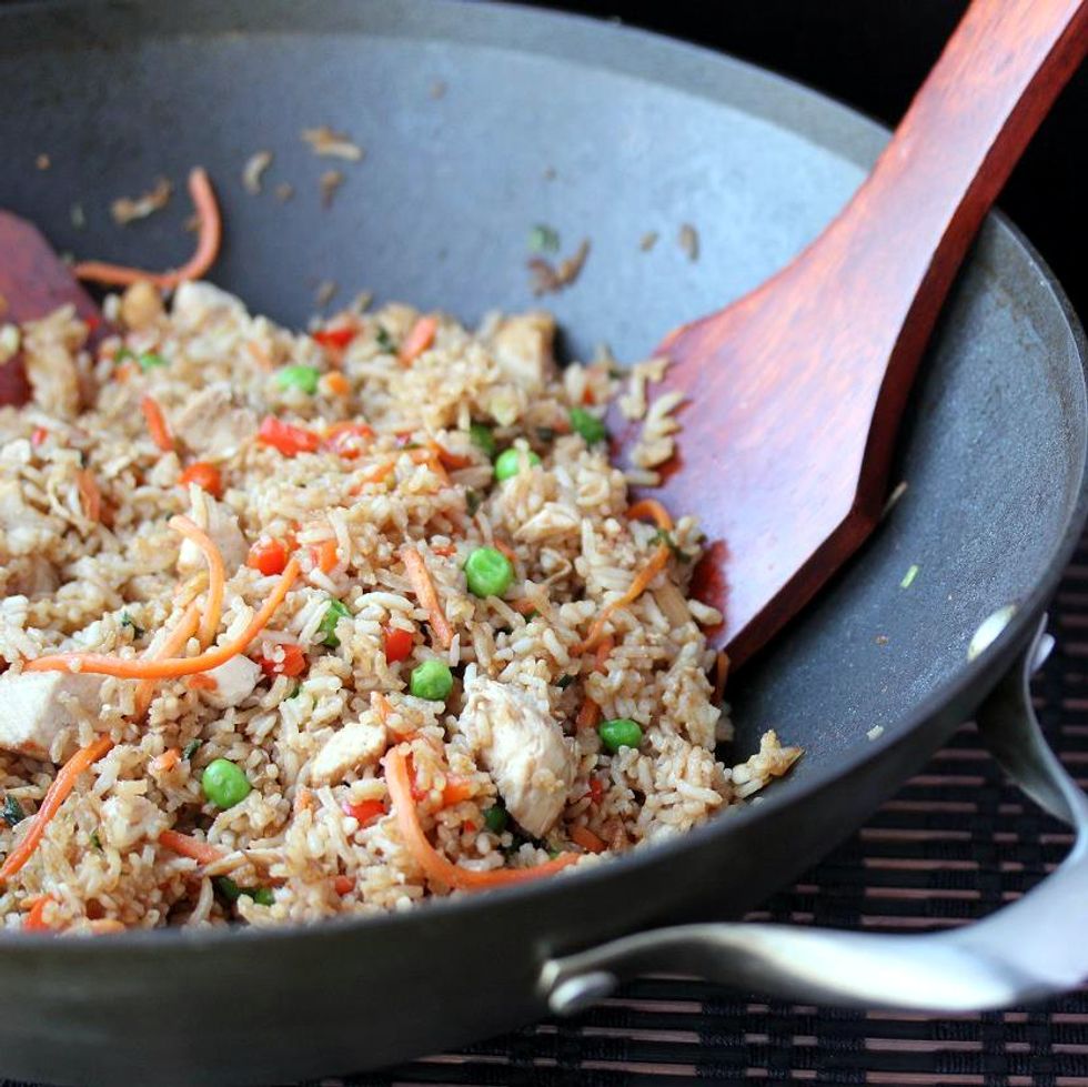 Pour oil into a wok or large skillet. Heat over high heat until oil ripples.