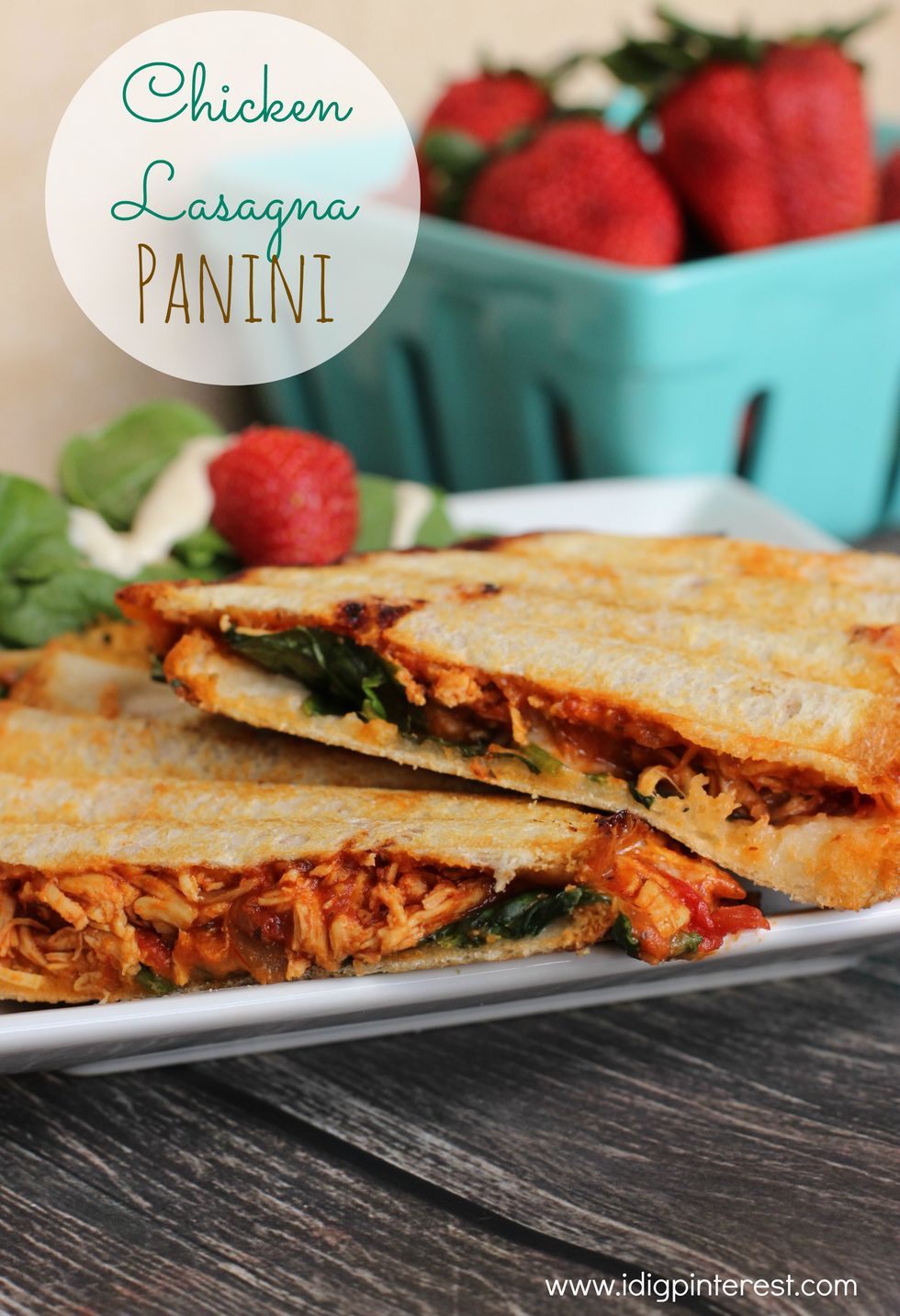 Filled with a delightful chicken lasagna mixture made with the best canned tomatoes, piled with fresh spinach, and topped with two cheeses, it's perfection between two pieces of bread!