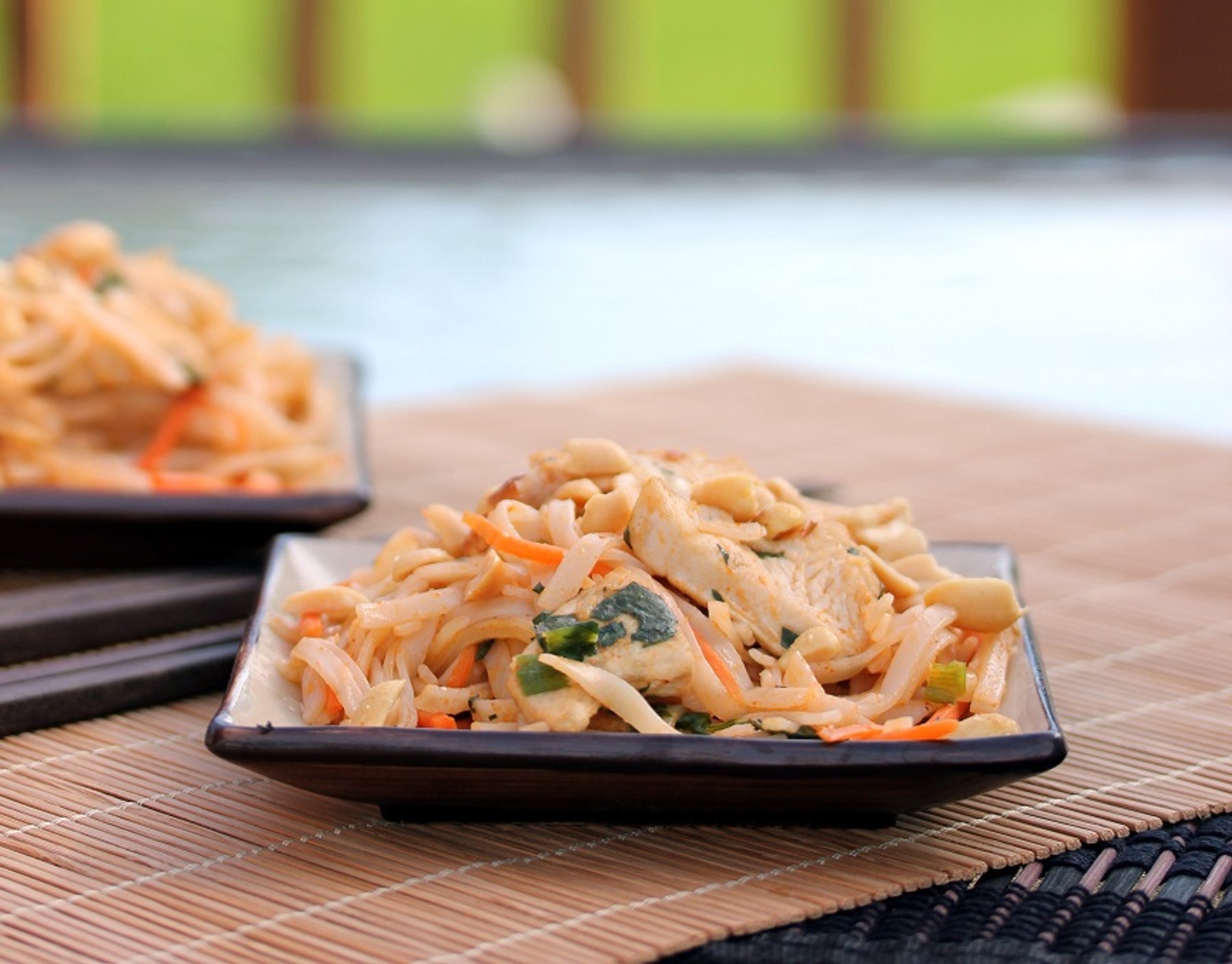 In a medium bowl, whisk together coconut milk, soy sauce, Thai curry pasted and sriracha sauce. Set aside.