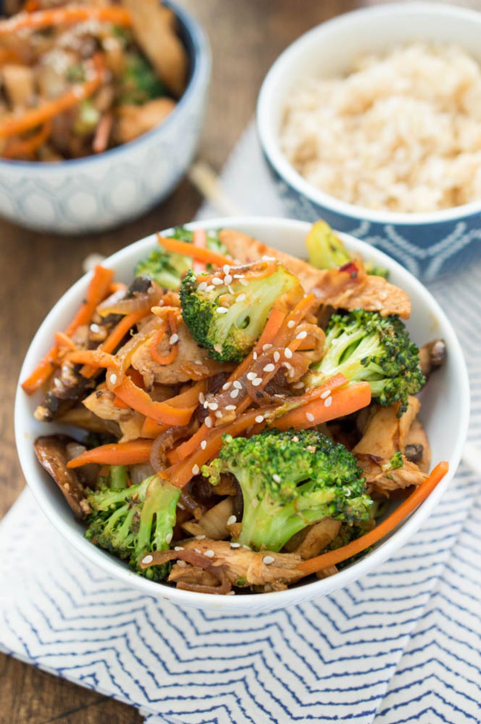 Easy 30 Minute Chicken Stir Fry loaded with vegetables and tossed in a spicy Asian sauce.