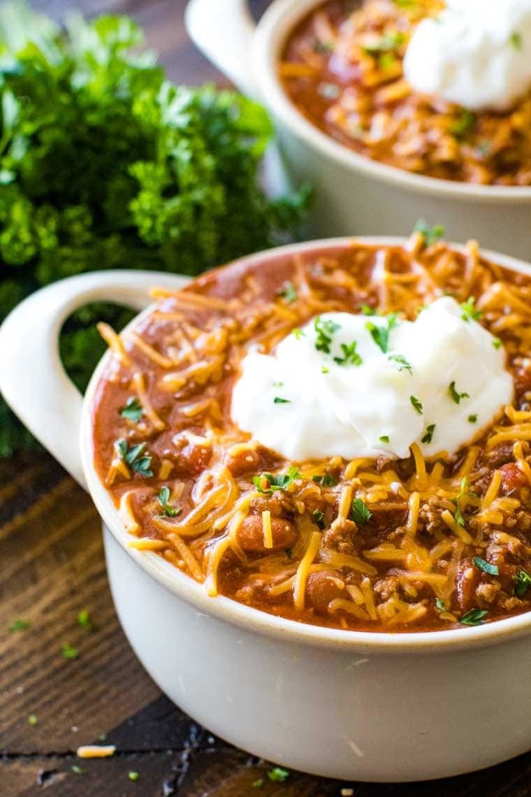 Easy homemade Chili recipe is loaded with ground beef, beans, and a blend of delicious seasonings. It's rich, hearty and the perfect bowl of chili to warm up with on a blustery winter day. You only need 30 minutes to make it! This is the perfect dinner recipe when you need comfort food and something fast! It will become your go to chili recipe for the winter.