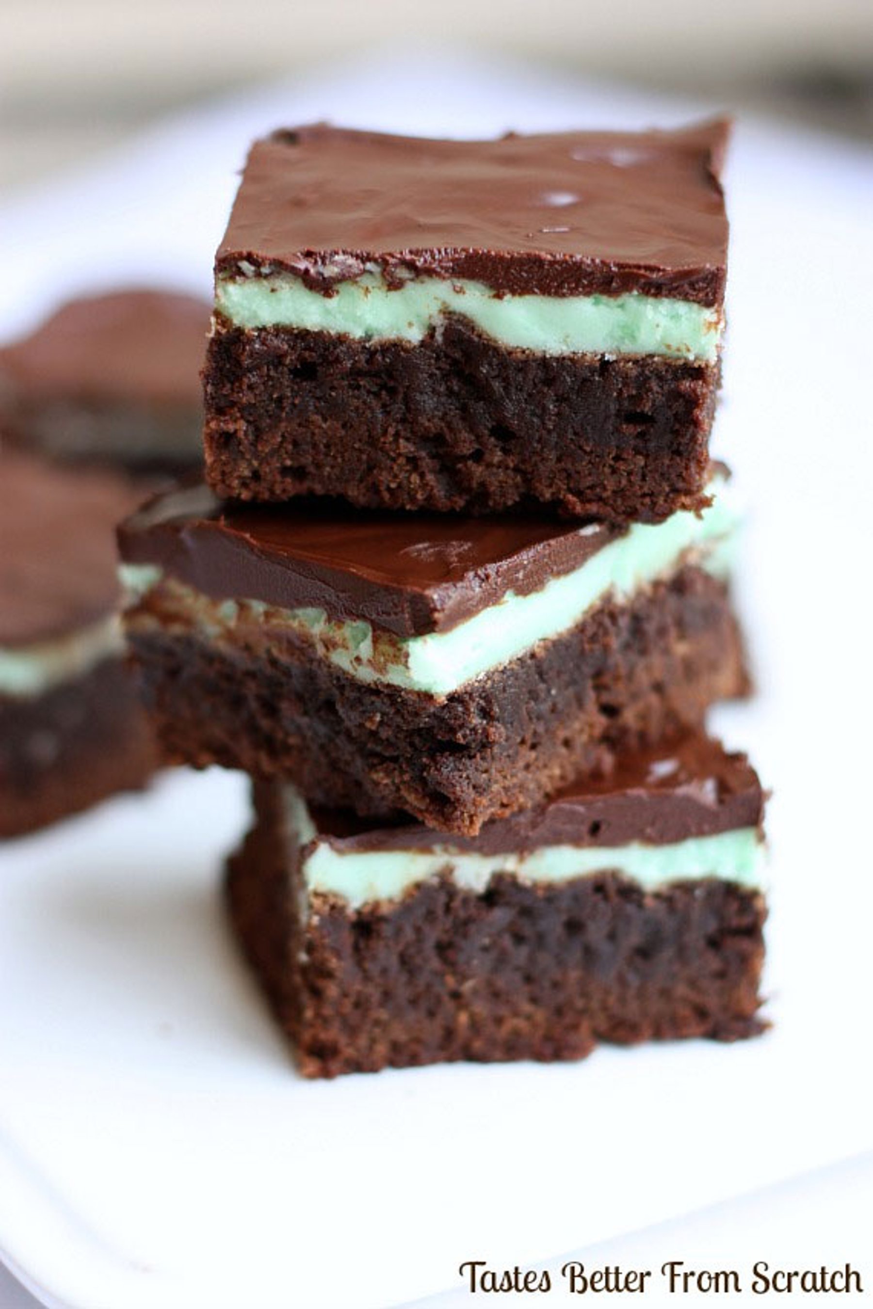 This homemade brownie recipe is absolutely fantastic. They’re moist, thick, fudge-y and exactly what a brownie should be. And then you top them with mint and chocolate frosting—AMAZING.