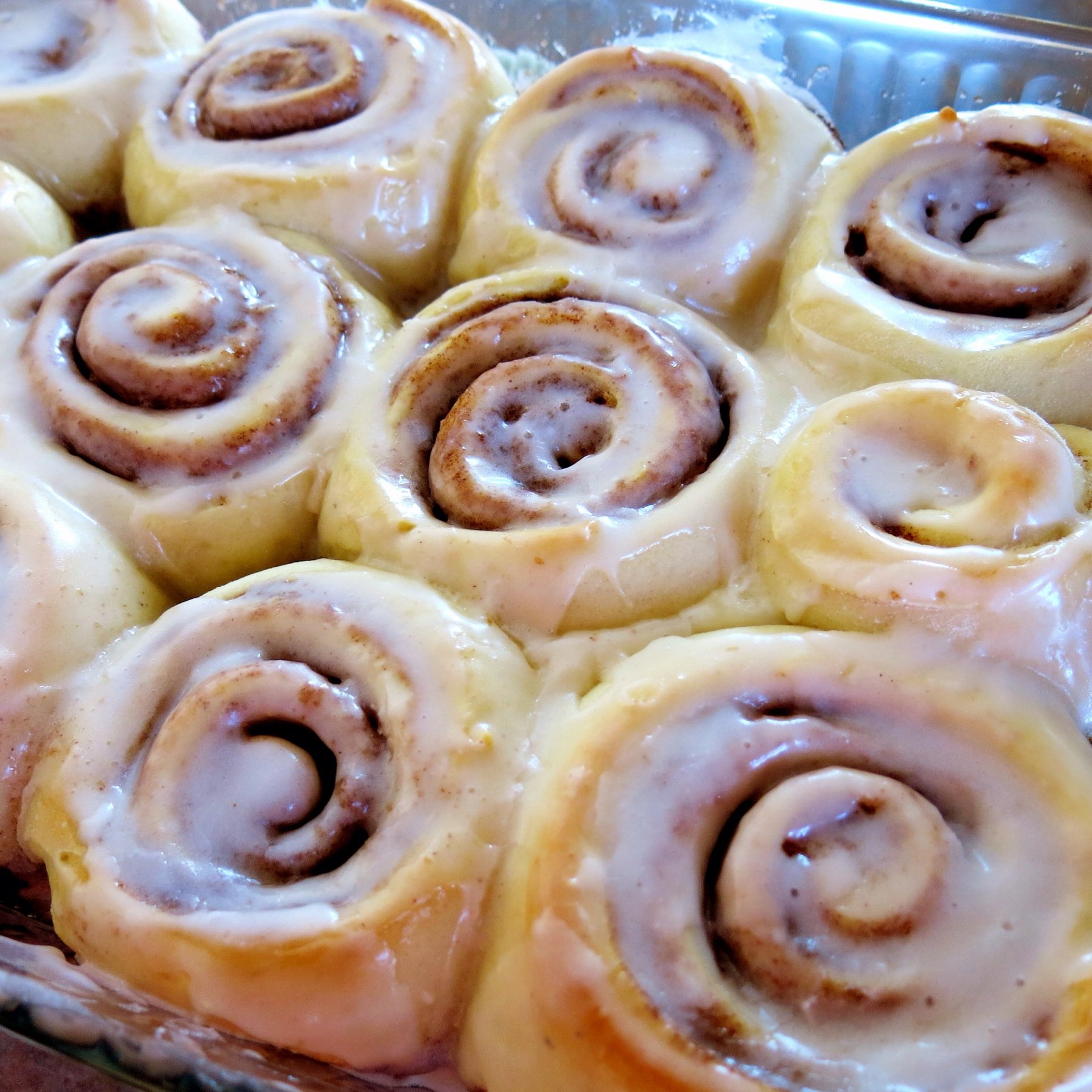 When rolls have finished rising bake for 15-20 minutes or until light golden brown. If desired spread with icing while still warm. Makes 12 rolls.