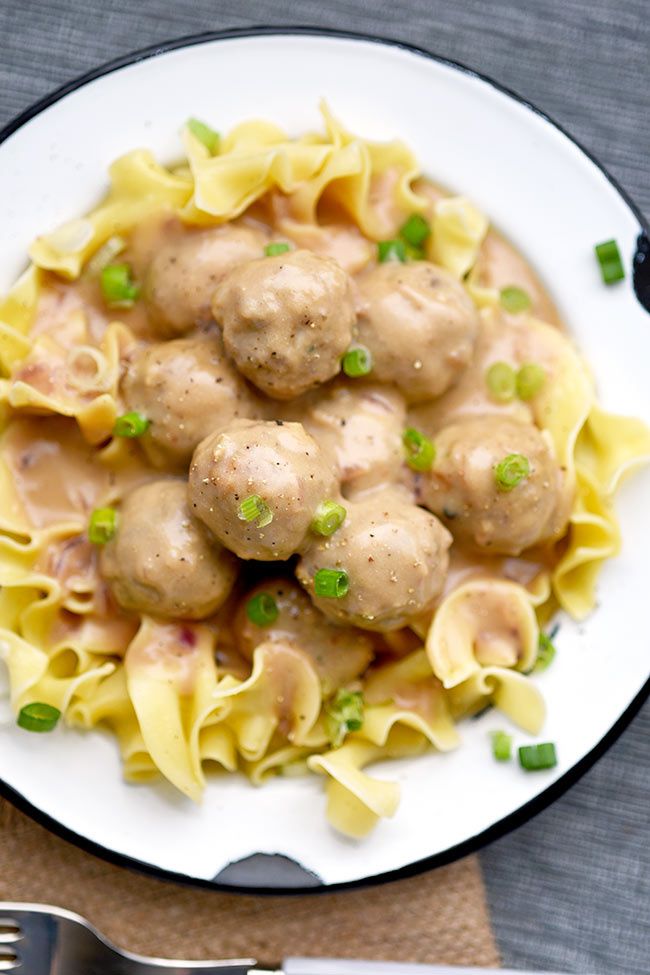 Creamy Swedish meatballs with noodles made easy using frozen meatballs. Perfect for an easy yet delicious weeknight dinner. No trip to Ikea necessary! ;)