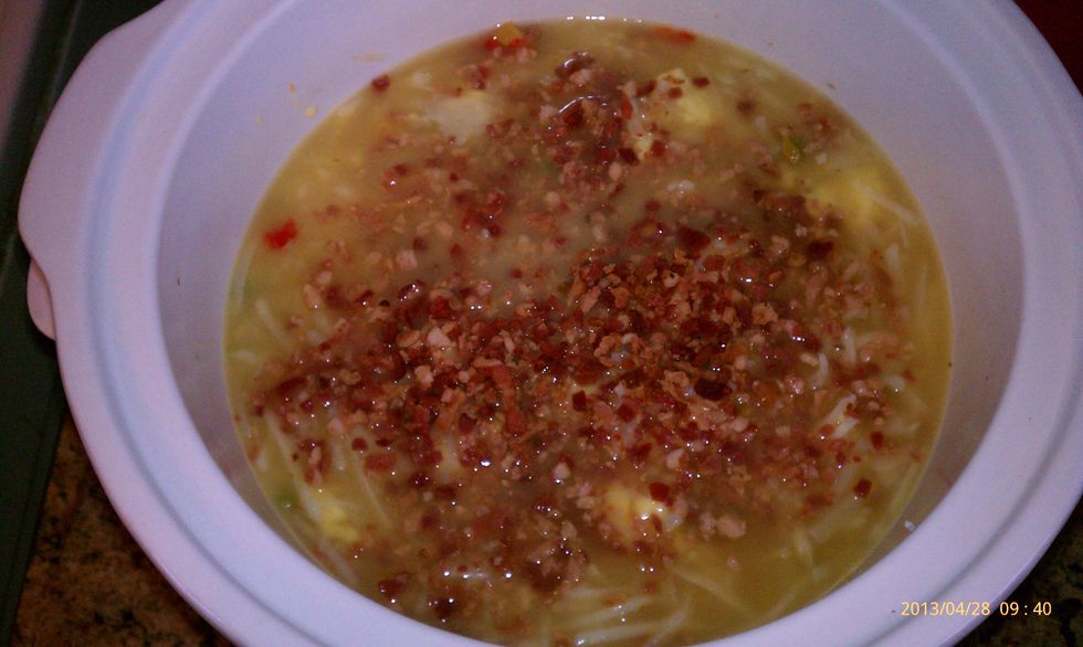 Stir in 8oz block of cream cheese, cook 30 minutes, stir occasionally.