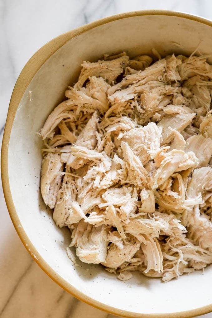 An easy, slow cooker recipe for making small or large batches of shredded chicken! Boneless, skinless chicken breasts are seasoned with salt, pepper, garlic powder and onion powder for an all-purpose shredded chicken recipe. Use it right away or freeze to make weeknight meals quick and easy!