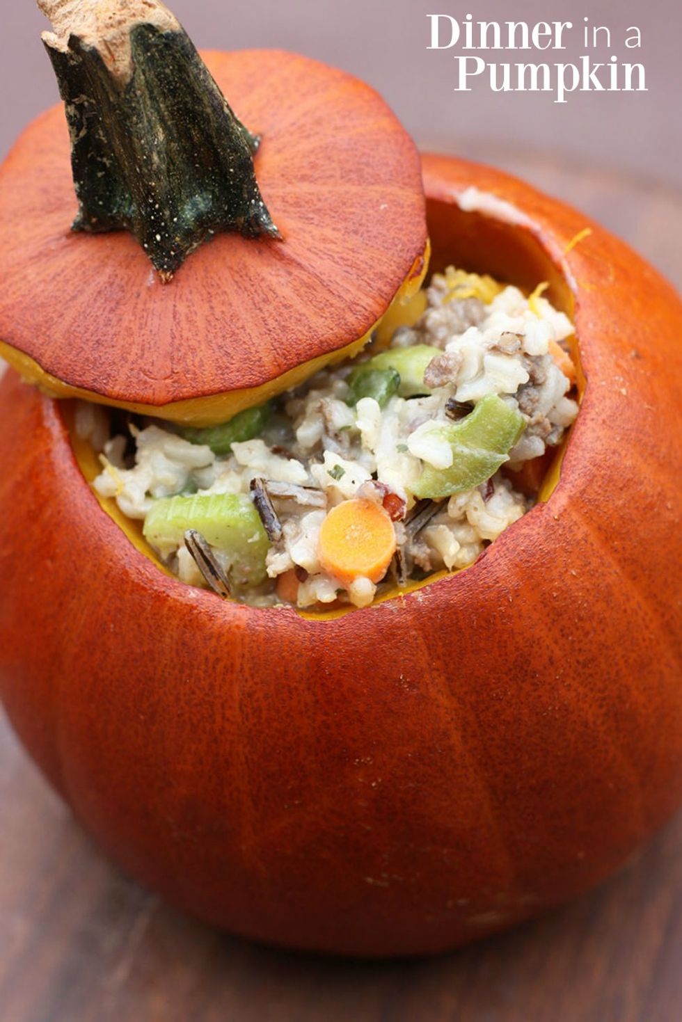 A delicious, hearty, casserole baked inside of a pumpkin. One of my favorite Halloween dinner traditions!