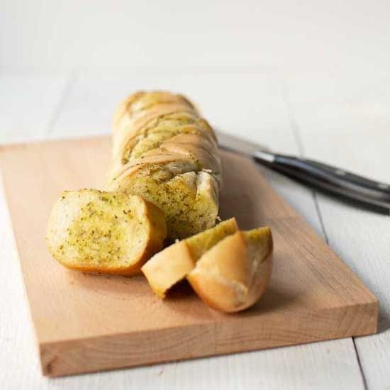 This is a super easy garlic bread recipe with a secret ingredient, homemade pesto with garlic. Take some fresh butter and baguette and turn it into a tasty appetizer.