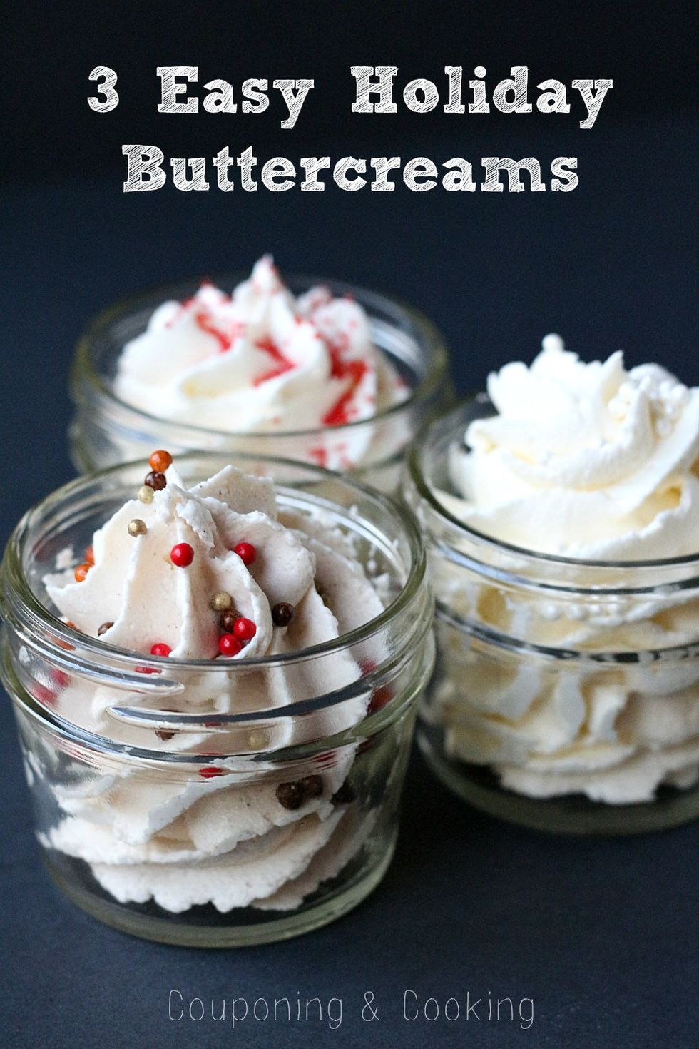 3 easy to make holiday buttercream frostings made from the same base recipe.