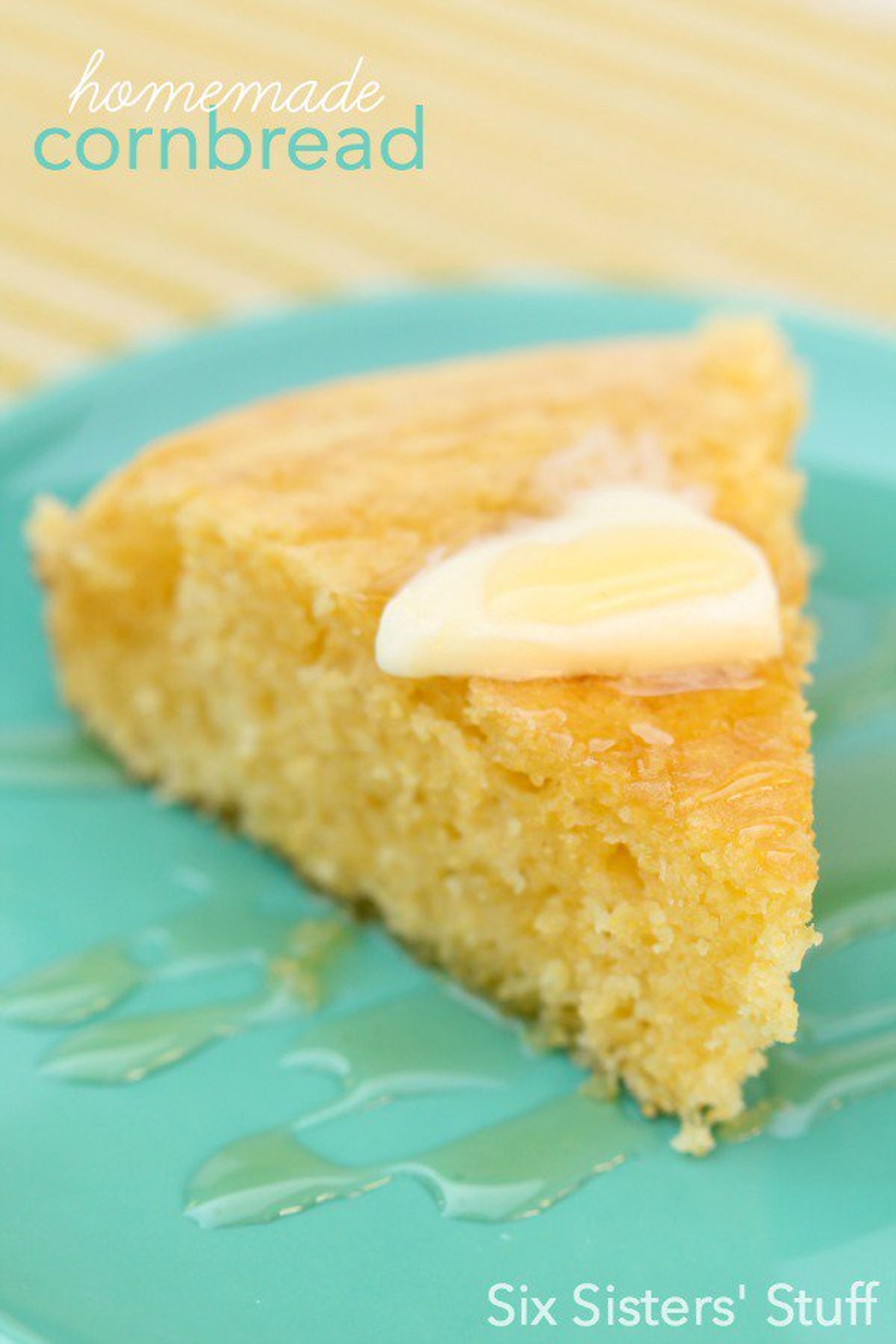 In a large bowl, mix together flour, cornmeal, sugar, salt and baking powder.