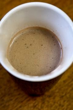 While the coffee brews measure the milk into a glass measuring cup and heat in the microwave until hot, about 1 minute.
