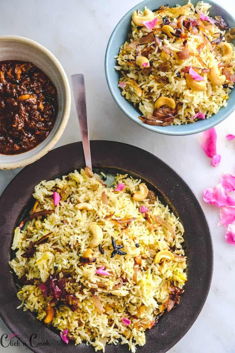 EASY KASHMIRI PULAO Nithya27March 06, 2021 247 Easy Kashmiri Pulao– Super Exotic, delectable, fluffy Kashmiri Pulao recipe with nuts and raisins wonderfully easy with just a few ingredients. This Pulao recipe is easy to make and on your table under 30 mins!3Recipe Link:- https://nithisclickncook.com/kashmiri-pulao/See the full directions on my site