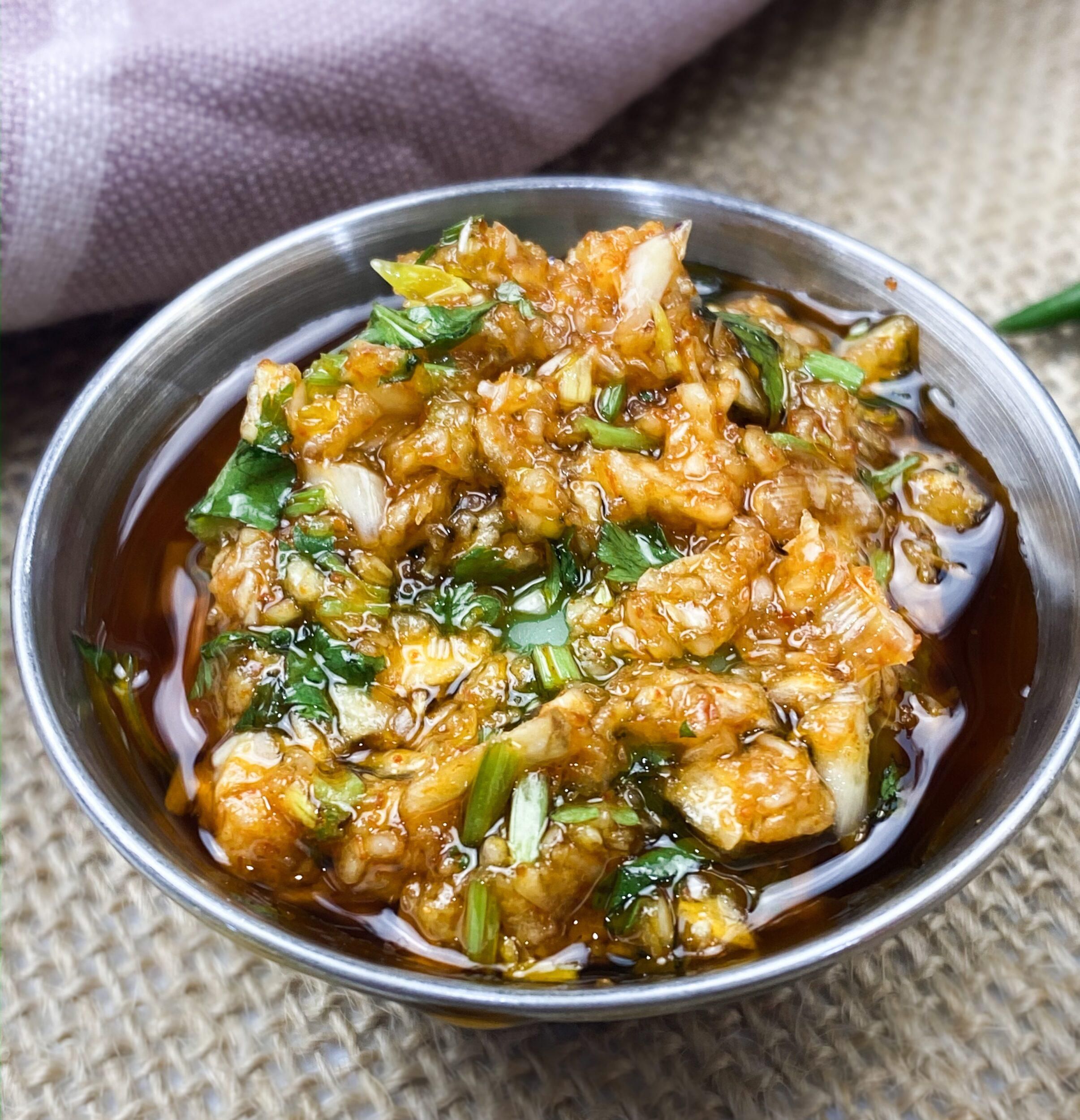 Fresh garlic cloves mixed with dry red chili powder, cilantro, and salt make this Easy Lasanya Garlic Chutney and Homemade Chili Oil the ultimate condiment for Indian food and beyond. Hands down, Garlic Chutney will increase recipe ratings in your kitchen, trust the flavors. Perfect ingredients to accompany a simple egg dish or street foods such as chaat, vada pav, masala dosa, and french fries.