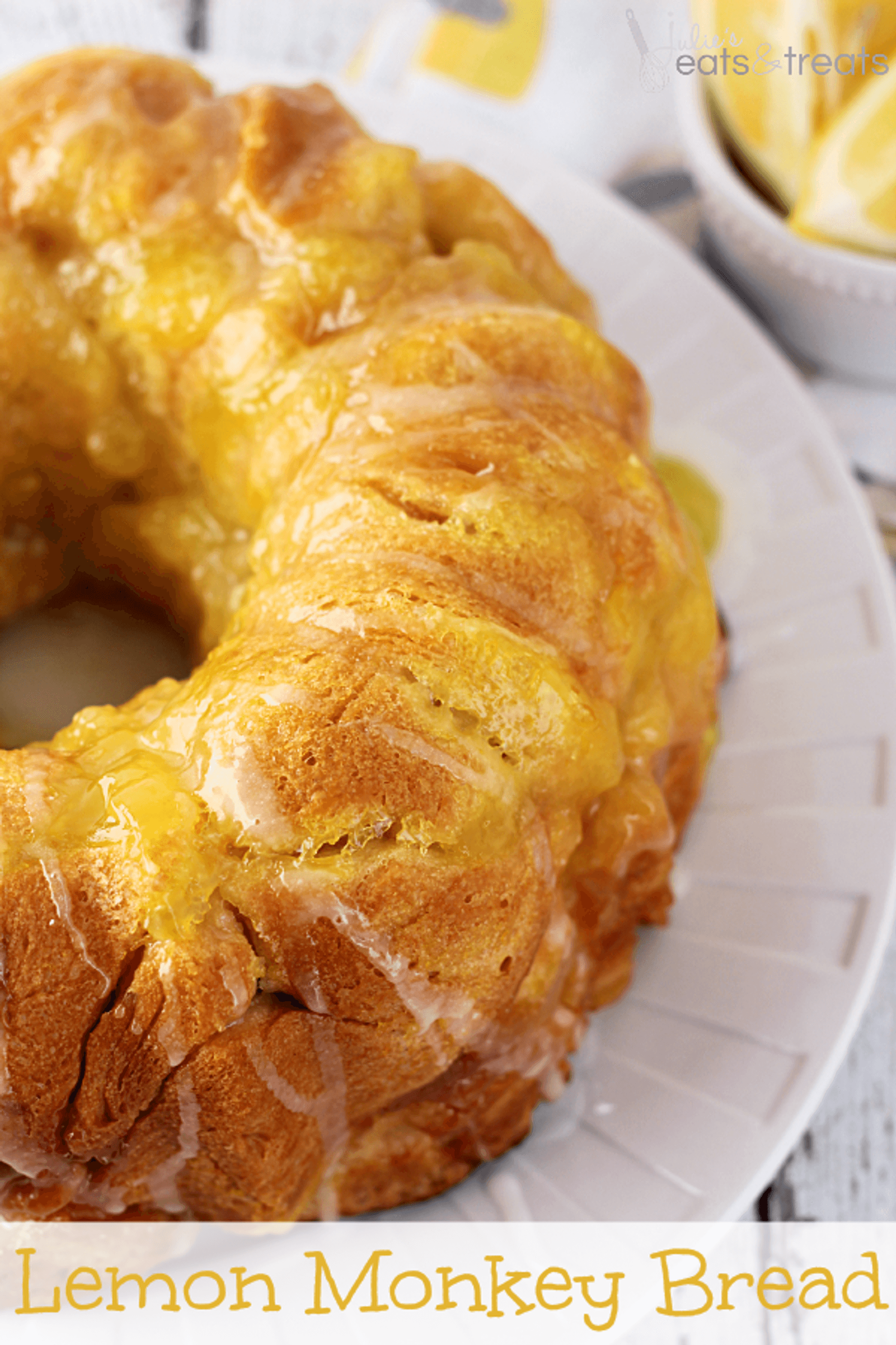 Lemon Monkey Bread ~ Flaky Biscuits Stuffed with Lemon Pie Filling and Drizzled in a Lemon Glaze!